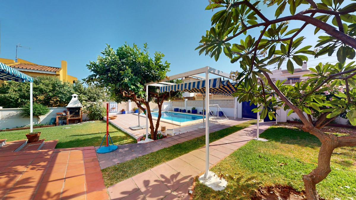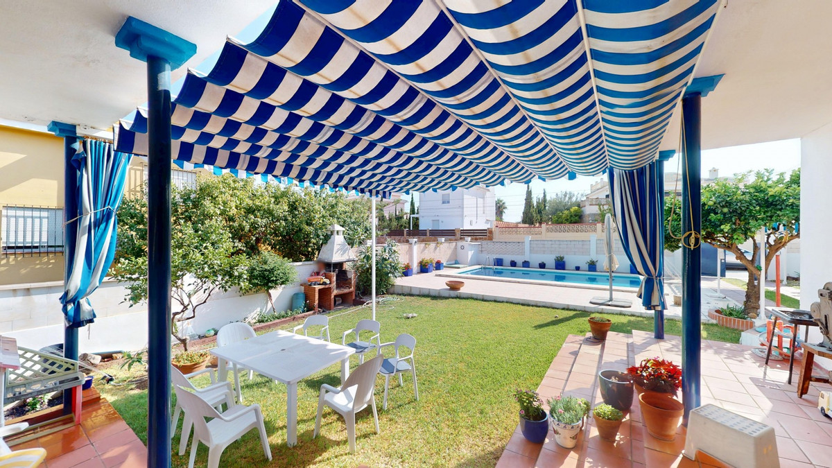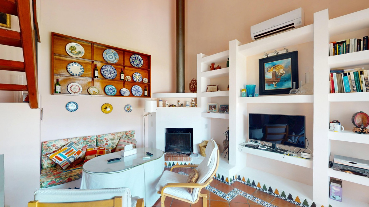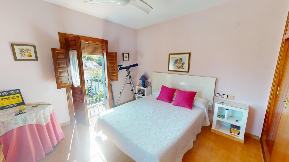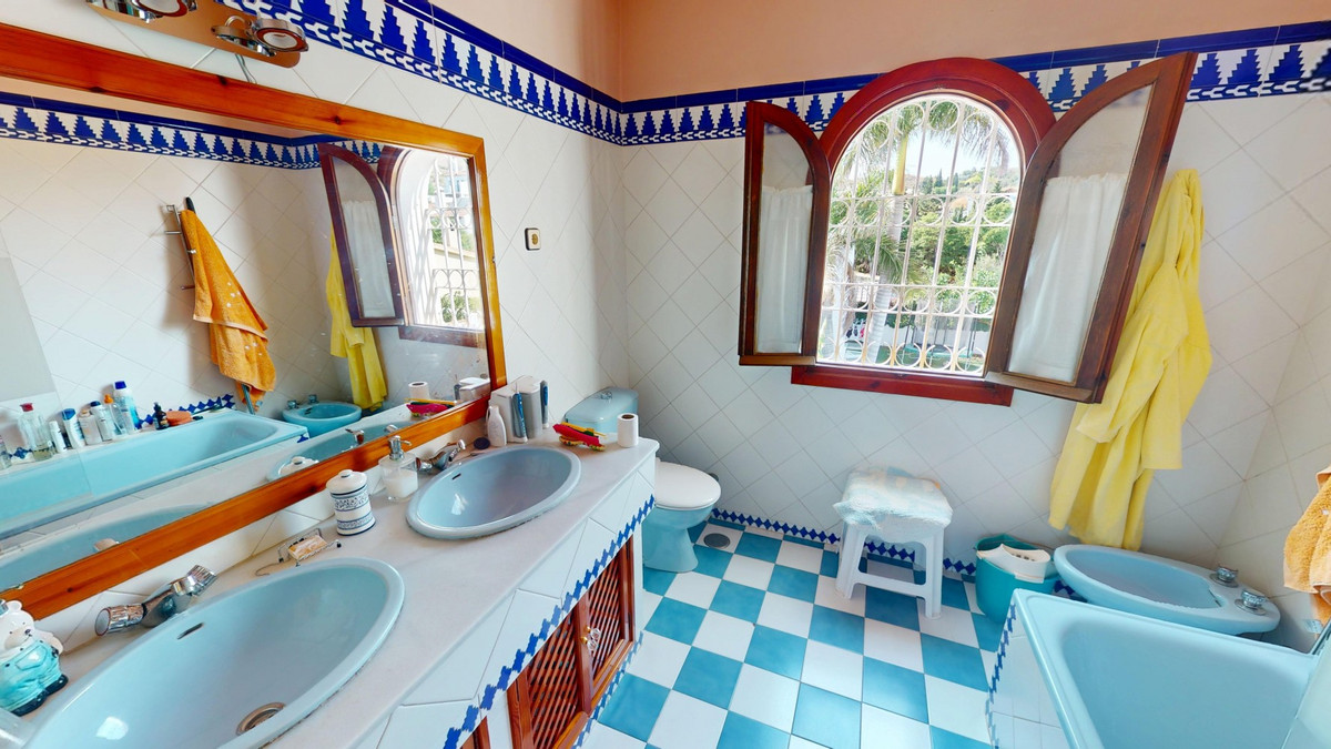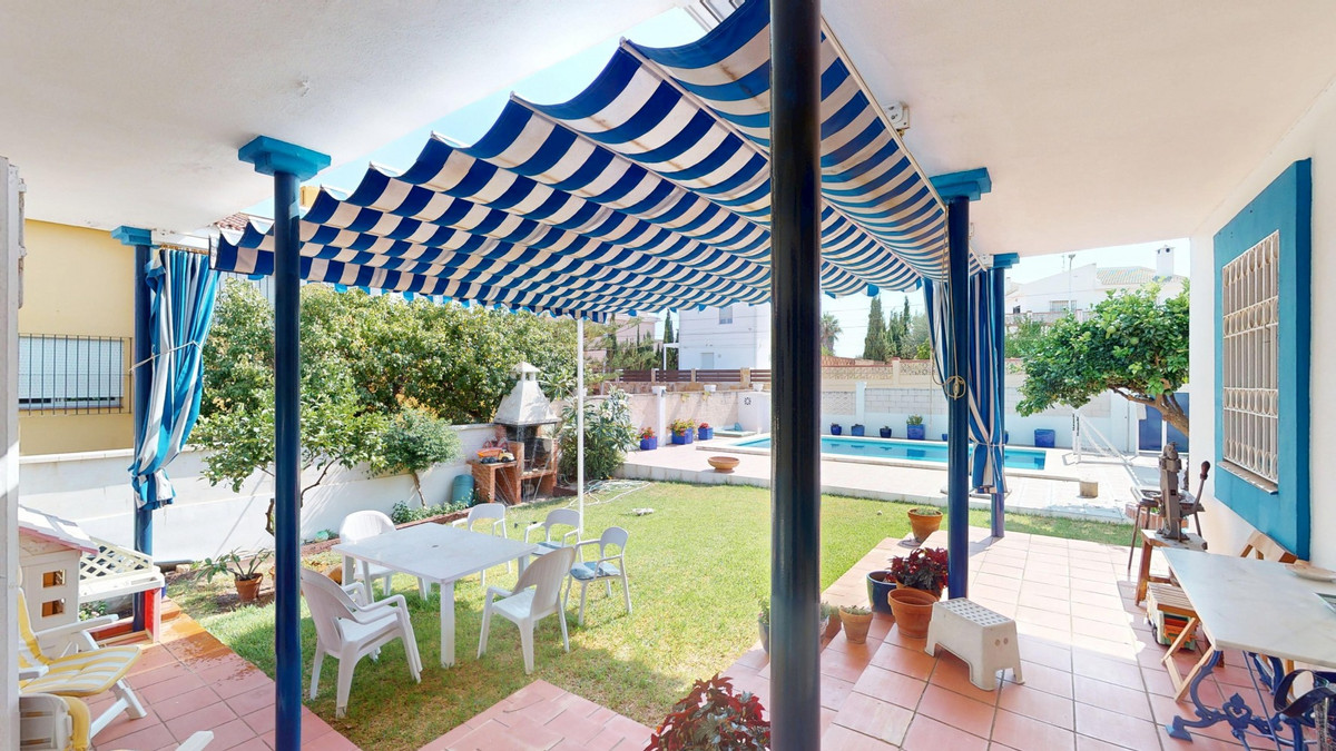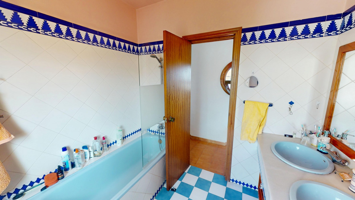 Cette magnifique villa espagnole s'étend sur deux étages et comprend trois chambres, dont une suite parentale impressionnante, et deux salles de bains. Elle allie le charme andalou traditionnel au confort moderne. Son design d'inspiration méditerranéenne se reflète dans les sols en terre cuite, les chaleureux éléments en bois et les espaces lumineux et aérés. Le séjour bénéficie d'une configuration unique en demi-niveaux avec des frises de carrelage décoratives, une cheminée accueillante et des étagères intégrées. Un élégant escalier en bois mène à l'étage, tandis que la cuisine ouverte communique harmonieusement avec le séjour, idéale pour la vie de famille ou pour recevoir. Les chambres sont spacieuses et disposent de placards intégrés pour un rangement optimal. De grandes fenêtres avec volets en bois traditionnels laissent entrer la lumière naturelle et offrent des vues pittoresques sur les environs. Les salles de bains sont pleines de caractère, l'une d'elles étant dotée d'un sol à damier bleu et blanc avec des frises de carrelage décoratives. À l'extérieur, la villa offre un jardin privé avec piscine, un espace détente idéal pour se relaxer, un garage et une terrasse sur le toit avec une vue imprenable, parfaite pour profiter du climat et des paysages de la Costa del Sol. Située à Chilches, cette propriété est idéale comme résidence principale, résidence secondaire ou investissement locatif. Nous sommes ravis de pouvoir vous présenter prochainement ce bien d'exception, en personne ou virtuellement. Car ce monde est unique, à l'image de notre Axarquía. En Andalousie. Sur la Costa del Sol. Ici, la vie est belle et ensoleillée…
