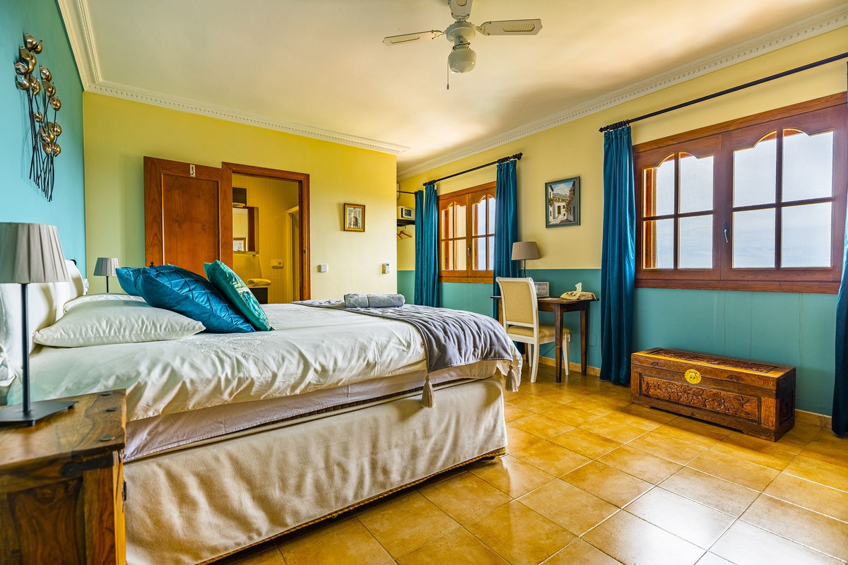 L'hébergement pour les invités comprend quatre chambres doubles spacieuses, dont une grande chambre familiale, toutes dotées d'une salle de bains privative et trois d'entre elles donnant accès à une terrasse. L'espace privé réservé aux propriétaires comprend une chambre double avec salle de bains privative, deux balcons-terrasses et une buanderie.