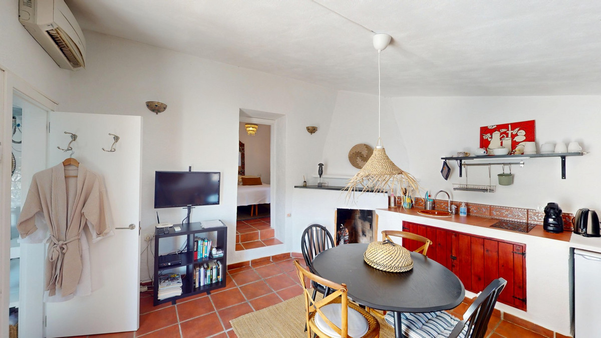 Niché dans les collines d'Arenas, à Malaga, ce charmant cortijo est bien plus qu'une simple maison : c'est un havre de paix méditerranéen empreint de caractère et de sérénité. Divisé en trois appartements indépendants, il se prête parfaitement à une charmante maison d'hôtes ou à une spacieuse résidence familiale, offrant flexibilité, confort et authenticité. L'appartement principal comprend deux chambres et deux salles de bains élégantes, chacune dotée d'une douche à l'italienne et de détails soignés tels que des vasques en marbre et des carreaux à motifs. L'espace de vie ouvert est chaleureux, avec son sol en terre cuite, son canapé d'angle gris clair, ses touches de rotin et son lustre en cristal étincelant. La cuisine est à la fois belle et fonctionnelle, avec ses meubles blancs, ses carreaux colorés et ses appareils électroménagers modernes, dont un lave-vaisselle et un four. Le deuxième appartement est un refuge intime et lumineux d'une chambre. Bien que compact, il offre tout le nécessaire : une kitchenette, une salle de bains chic avec une douche carrelée à motifs de feuilles tropicales et des touches élégantes comme des lustres et des miroirs décoratifs. Le rotin, la terre cuite et les détails tressés apportent chaleur et texture à chaque recoin. Le troisième appartement offre un agencement bien pensé avec une chambre, une salle de bains, un bureau, une cuisine et un séjour. Les murs blanchis à la chaux, la cheminée et les grandes fenêtres lui confèrent une atmosphère lumineuse et aérée, tandis que les placards de cuisine rouges et le mobilier rustique y ajoutent une touche de personnalité. Chaque pièce est ornée d'éléments artistiques, d'un éclairage unique et d'une décoration artisanale. Mais c'est l'espace extérieur qui confère à cette propriété toute sa magie. Le cortijo est entouré de vues imprenables sur les montagnes, et le jardin regorge de charme : sols en pierre naturelle, terrasses ombragées, coins salon intimes, une méridienne pour des après-midi de détente et une piscine aux eaux turquoise scintillantes. La cuisine d'été couverte est un véritable atout, avec ses carreaux faits main et son plan de travail artisanal qui témoignent du soin et de l'amour apportés à chaque détail de cette maison. Chaque recoin de ce cortijo est plein de caractère, des tentures murales artistiques aux luminaires artisanaux, en passant par la sensation de calme qui vous enveloppe dès votre arrivée. Que vous recherchiez une retraite paisible ou que vous souhaitiez accueillir des hôtes dans un Bed & Breakfast d'exception, ce joyau andalou est l'escapade idéale. Nous sommes ravis de pouvoir vous présenter prochainement cette propriété de rêve, en personne ou par visite virtuelle. Car ce monde est unique, à l'image de notre Axarquía. En Andalousie. Sur la Costa del Sol. Ici, sous le soleil…