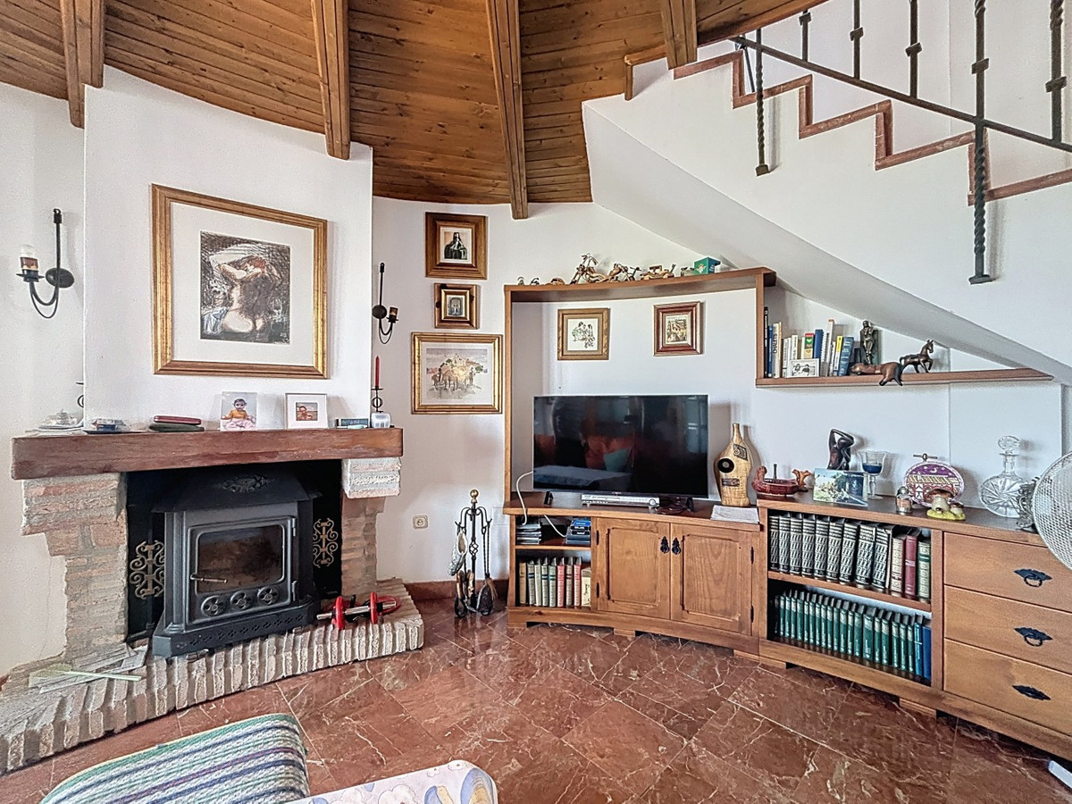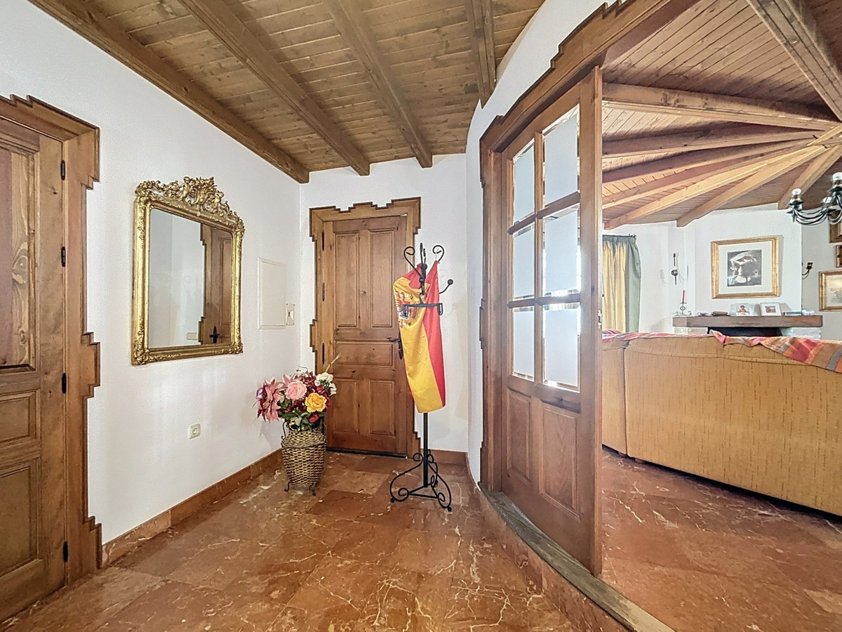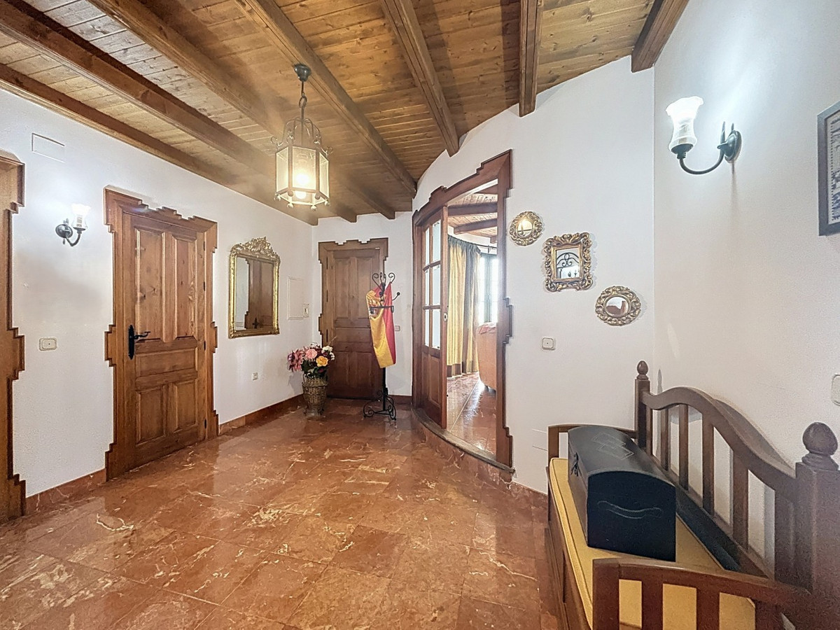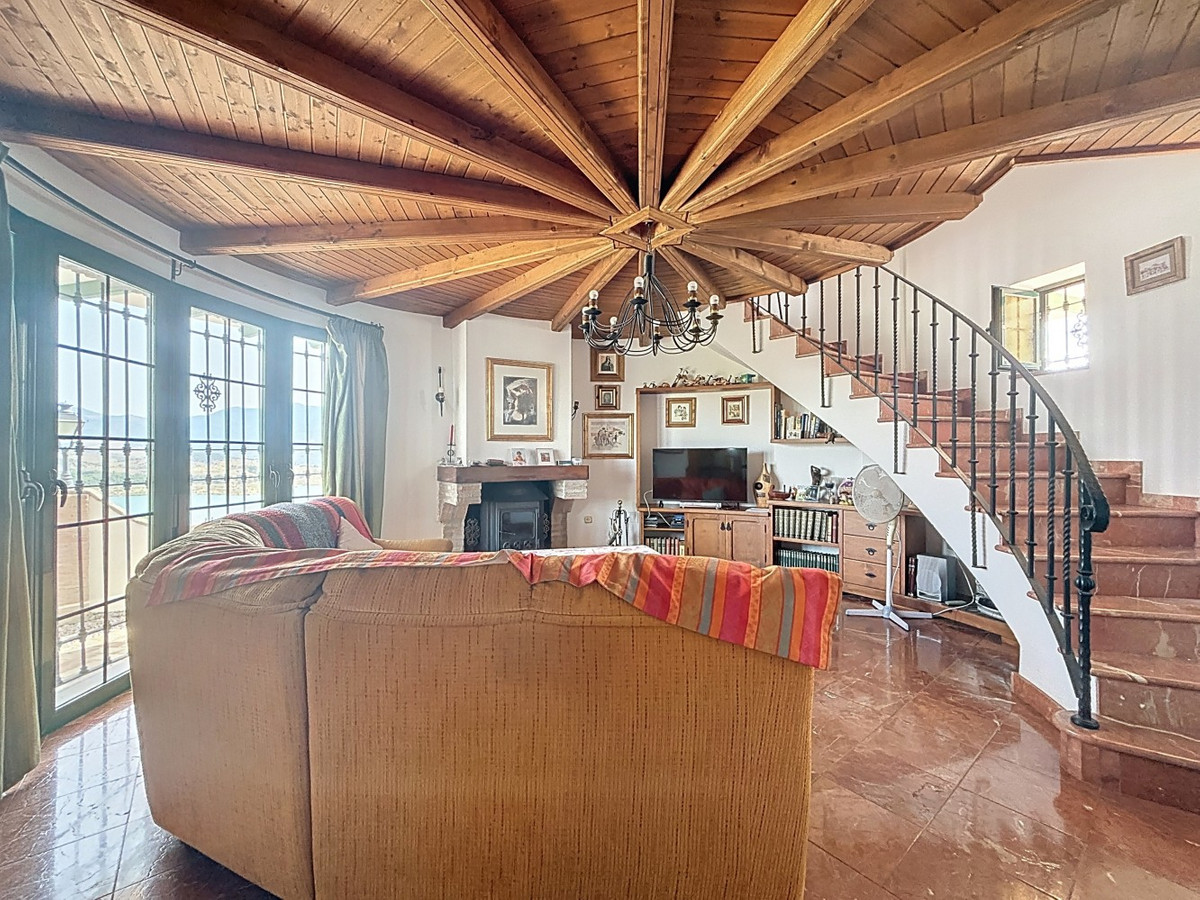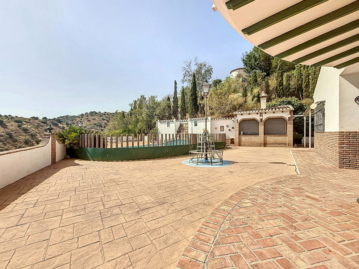 Cette charmante villa située à Los Romanes, près de Malaga, allie harmonieusement l'architecture espagnole traditionnelle au confort moderne. La maison principale comprend quatre chambres, dont une spacieuse suite parentale, trois salles de bains complètes, des toilettes invités, une buanderie et une cave à vin au sous-sol, idéale pour les amateurs de vin. Les pièces à vivre se distinguent par leurs plafonds à poutres apparentes qui leur confèrent chaleur et cachet. Le salon principal se démarque par son plafond en bois orné de motifs solaires et son grand lustre en fer forgé. Une cheminée et un mobilier confortable créent une ambiance chaleureuse. De grandes fenêtres et des portes-fenêtres inondent l'espace de lumière naturelle et offrent de superbes vues sur le lac Viñuela et la nature environnante. La propriété comprend également un appartement indépendant avec deux chambres, une salle de bains et un espace de vie ouvert convivial avec cuisine équipée, idéal pour accueillir des invités ou pour un hébergement supplémentaire. À l'extérieur, la villa bénéficie d'un vaste terrain avec piscine privée, cuisine d'été avec barbecue, terrasse couverte, pavillon, deux garages et deux remises pouvant être transformées en un autre appartement. De plus, la propriété dispose de son propre puits et d'une citerne dans l'un des garages, garantissant un approvisionnement en eau fiable toute l'année. Nous sommes ravis de pouvoir vous présenter prochainement cette propriété de rêve, en personne ou par visite virtuelle. Car ce monde est unique, à l'image de notre Axarquía. En Andalousie. Sur la Costa del Sol. Ici, sous le soleil…