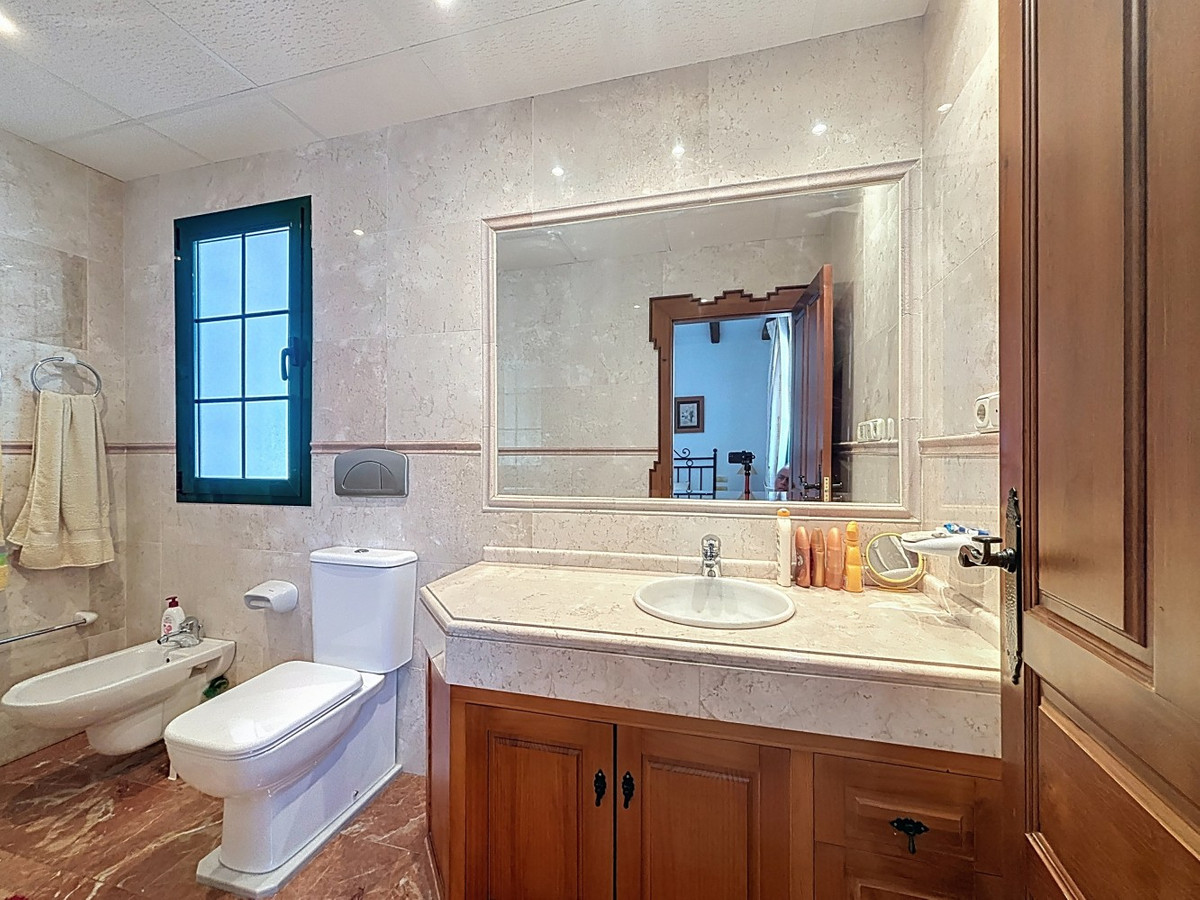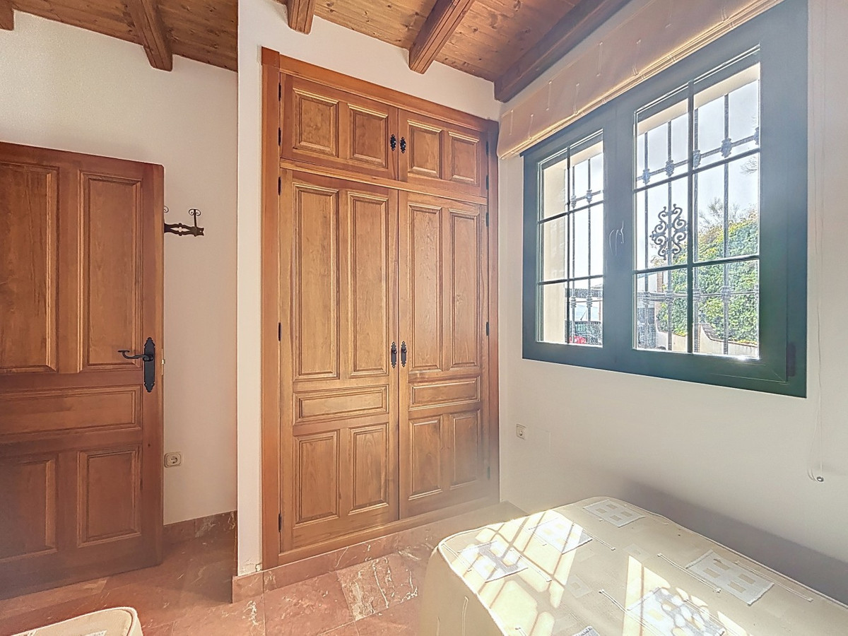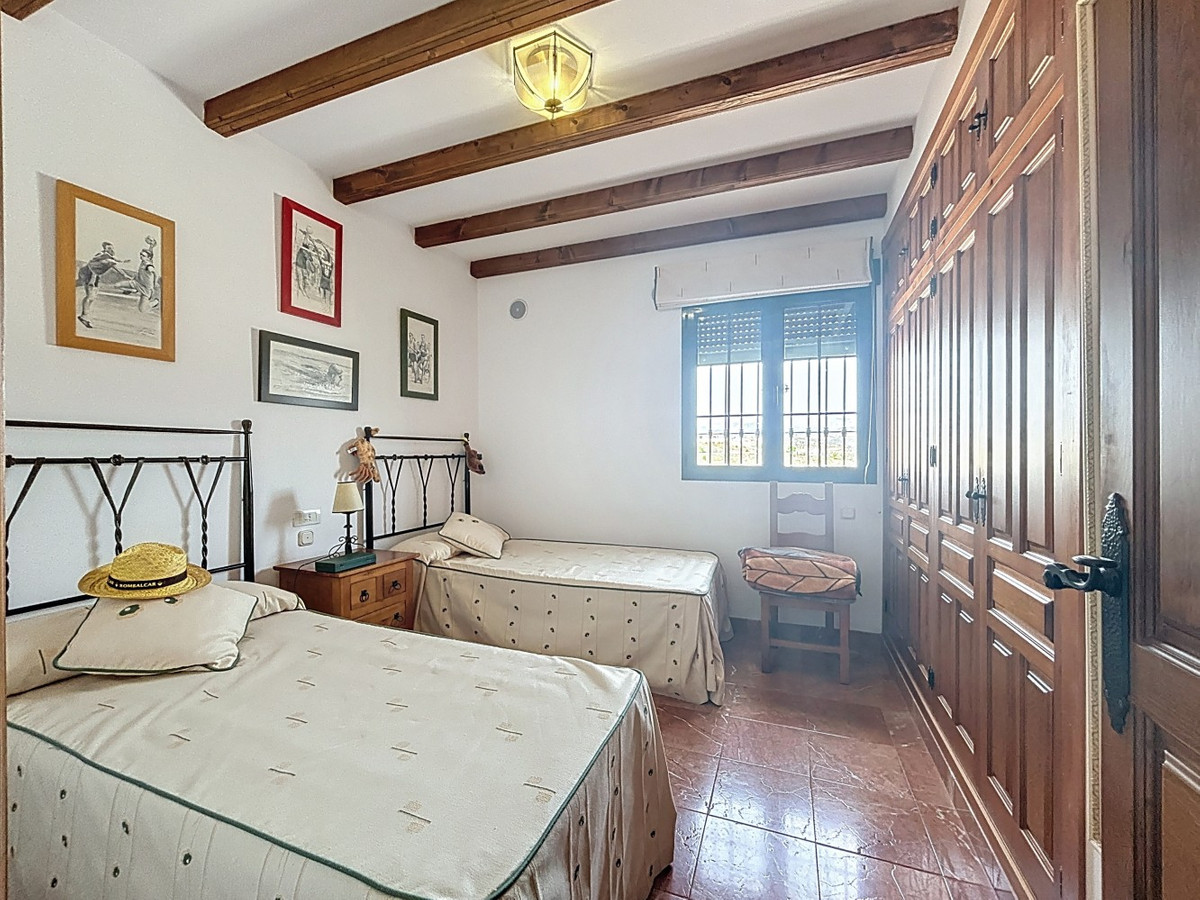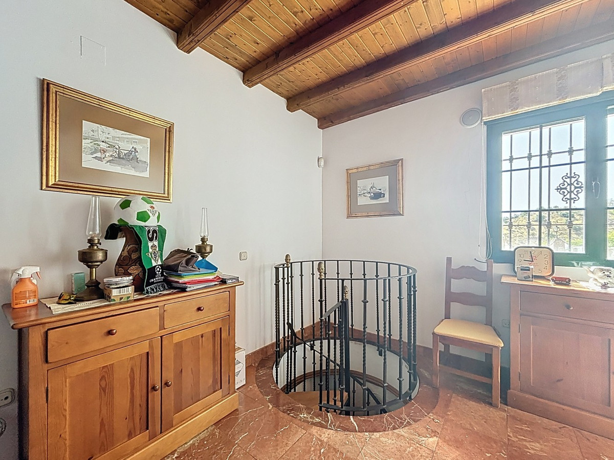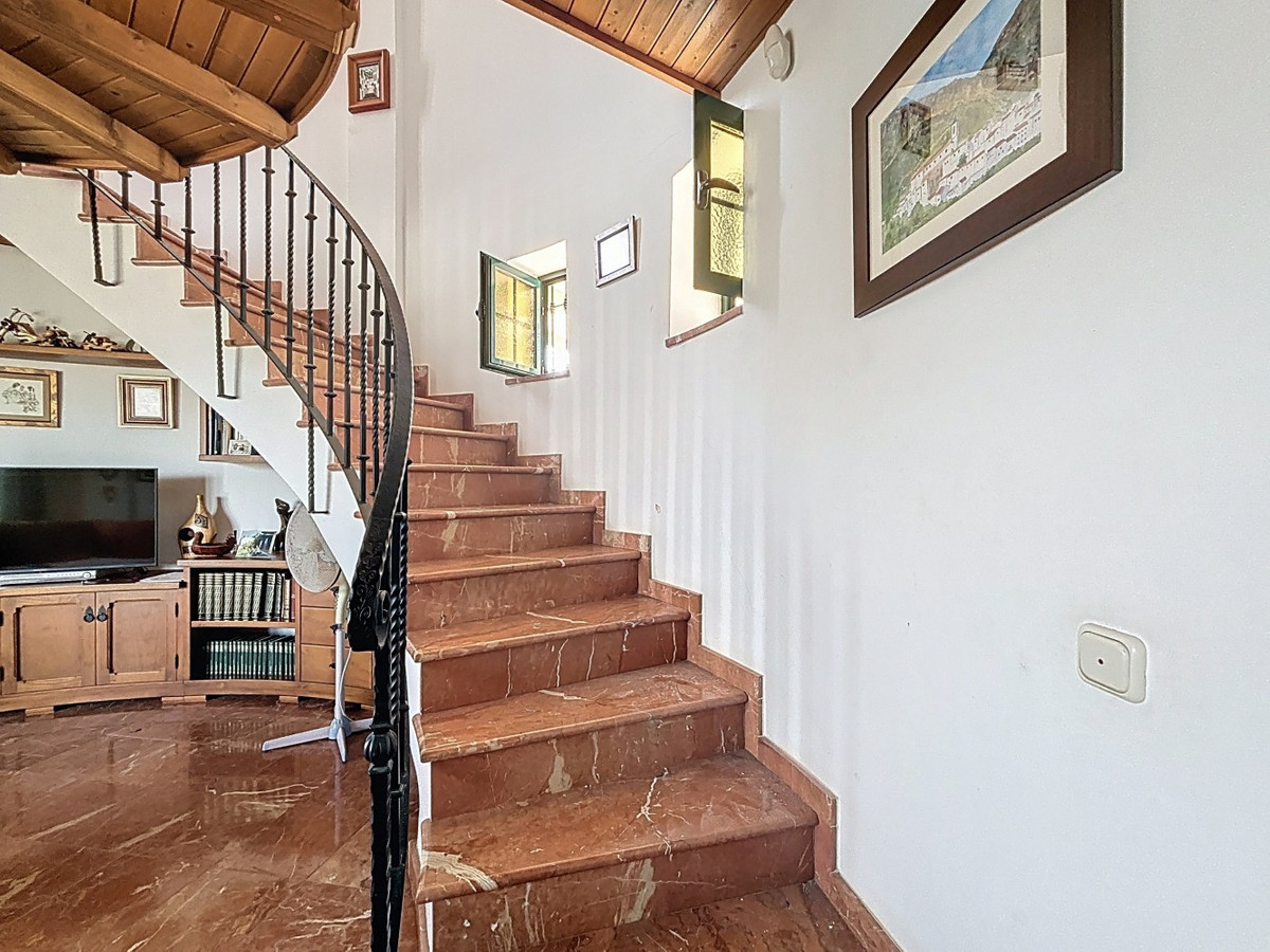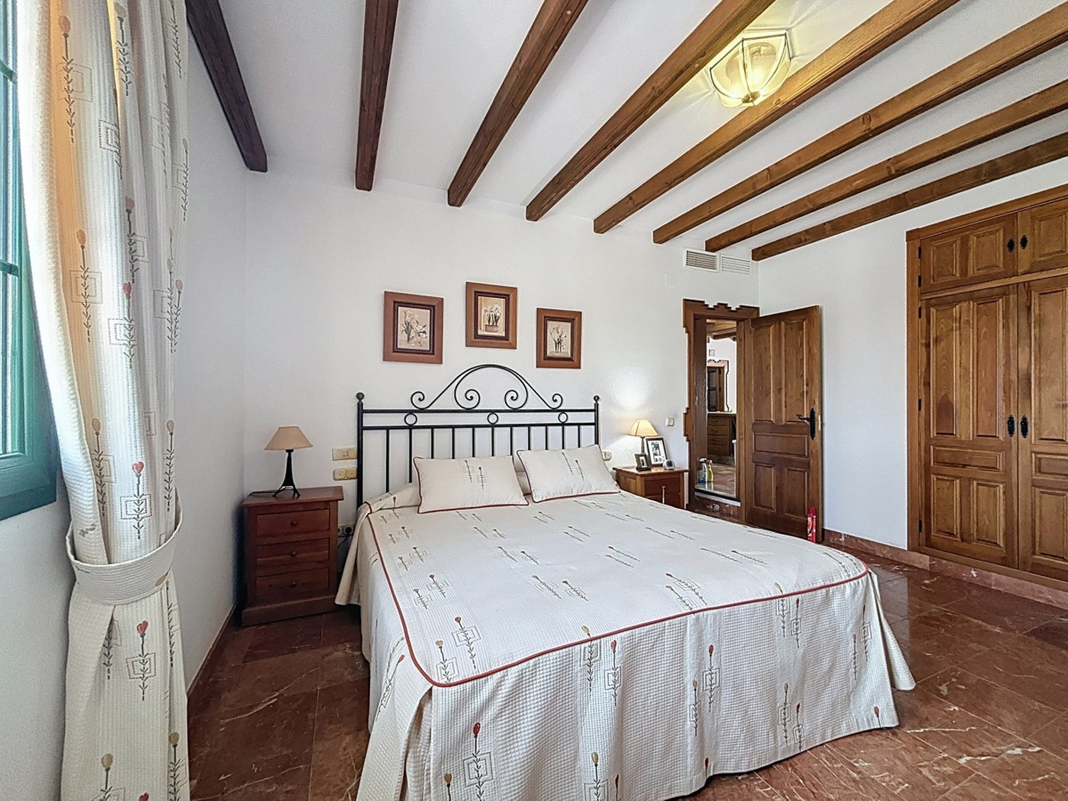 Cette charmante villa située à Los Romanes, près de Malaga, allie harmonieusement l'architecture espagnole traditionnelle au confort moderne. La maison principale comprend quatre chambres, dont une spacieuse suite parentale, trois salles de bains complètes, des toilettes invités, une buanderie et une cave à vin au sous-sol, idéale pour les amateurs de vin. Les pièces à vivre se distinguent par leurs plafonds à poutres apparentes qui leur confèrent chaleur et cachet. Le salon principal se démarque par son plafond en bois orné de motifs solaires et son grand lustre en fer forgé. Une cheminée et un mobilier confortable créent une ambiance chaleureuse. De grandes fenêtres et des portes-fenêtres inondent l'espace de lumière naturelle et offrent de superbes vues sur le lac Viñuela et la nature environnante. La propriété comprend également un appartement indépendant avec deux chambres, une salle de bains et un espace de vie ouvert convivial avec cuisine équipée, idéal pour accueillir des invités ou pour un hébergement supplémentaire. À l'extérieur, la villa bénéficie d'un vaste terrain avec piscine privée, cuisine d'été avec barbecue, terrasse couverte, pavillon, deux garages et deux remises pouvant être transformées en un autre appartement. De plus, la propriété dispose de son propre puits et d'une citerne dans l'un des garages, garantissant un approvisionnement en eau fiable toute l'année. Nous sommes ravis de pouvoir vous présenter prochainement cette propriété de rêve, en personne ou par visite virtuelle. Car ce monde est unique, à l'image de notre Axarquía. En Andalousie. Sur la Costa del Sol. Ici, sous le soleil…