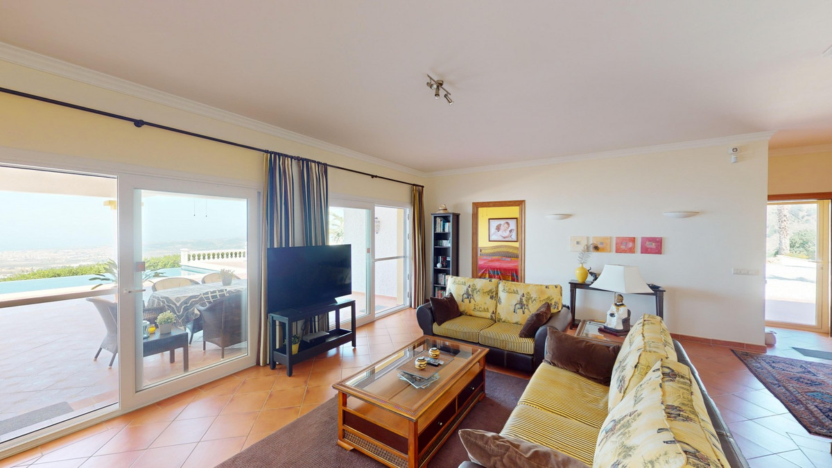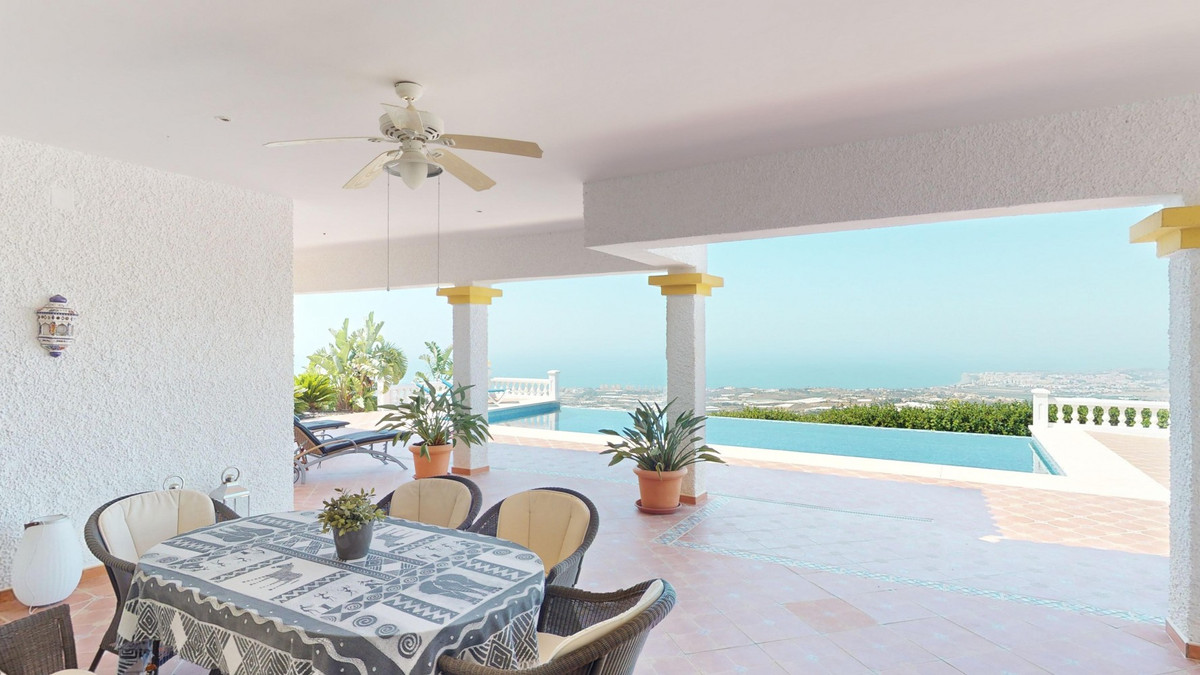 À vendre : une villa à couper le souffle située dans le cadre pittoresque d'Algarrobo, répondant à toutes vos envies et attentes d'une demeure de luxe. Cette propriété exceptionnelle impressionne non seulement par ses vues imprenables sur la mer, mais aussi par sa piscine à débordement qui se fond harmonieusement dans l'horizon, vous donnant l'impression de ne faire qu'un avec l'océan. La villa dispose de trois chambres spacieuses, chacune élégamment meublée et équipée d'une salle de bains privative, garantissant un confort et une intimité optimaux. Le séjour/salle à manger ouvert, avec sa cuisine moderne entièrement équipée, offre un espace généreux pour des soirées conviviales en famille ou entre amis. De larges baies vitrées laissent entrer une abondante lumière naturelle et offrent une vue imprenable sur la mer scintillante. Le chauffage au sol assure une atmosphère chaleureuse et confortable tout au long de l'année. De là, vous accédez à la terrasse couverte, véritable espace de vie extérieur supplémentaire. C'est l'endroit idéal pour admirer les couchers de soleil spectaculaires et les vues panoramiques sur le littoral. Le jardin soigné invite à la détente et offre un vaste espace pour vos loisirs. Une buanderie séparée avec de nombreux rangements ajoute au confort et à la praticité de cette villa. Plusieurs places de parking sont à votre disposition, vous assurant un séjour confortable et sécurisé. La villa bénéficie d'un emplacement paisible et idyllique, tout en offrant un accès facile aux commodités environnantes. Ici, vous profiterez d'une intimité et d'une détente absolues dans l'une des plus belles régions de la Costa del Sol. Cette propriété se distingue par la qualité exceptionnelle de sa construction et ses prestations exclusives. C'est le choix idéal pour ceux qui recherchent un bien d'exception et apprécient un style de vie luxueux dans un cadre unique. Laissez-vous charmer par cette villa de rêve et découvrez le meilleur de la vie ! Nous serons ravis de vous présenter prochainement cette propriété de rêve, en personne ou par visite virtuelle. Car ce monde est unique, à l'image de notre Axarquía. En Andalousie. Sur la Costa del Sol. Ici, sous le soleil…