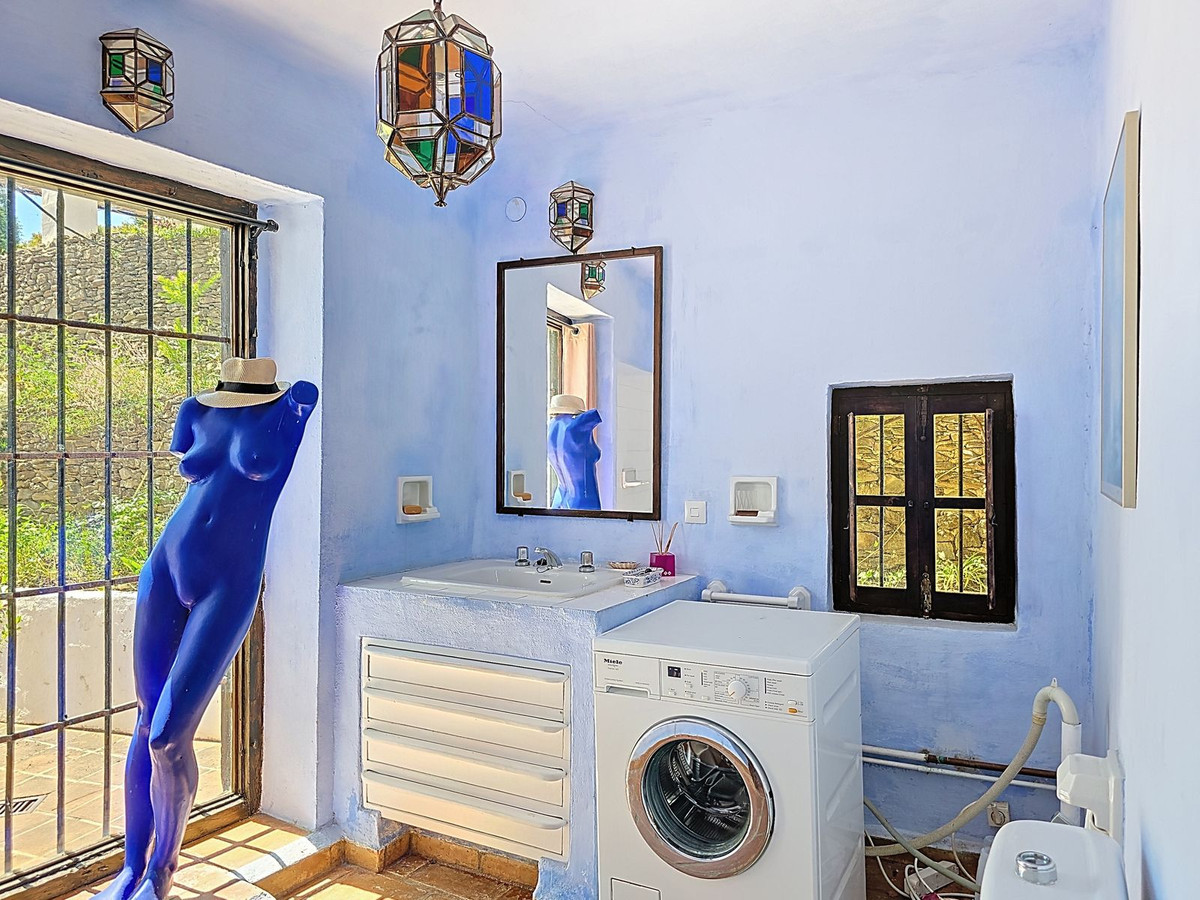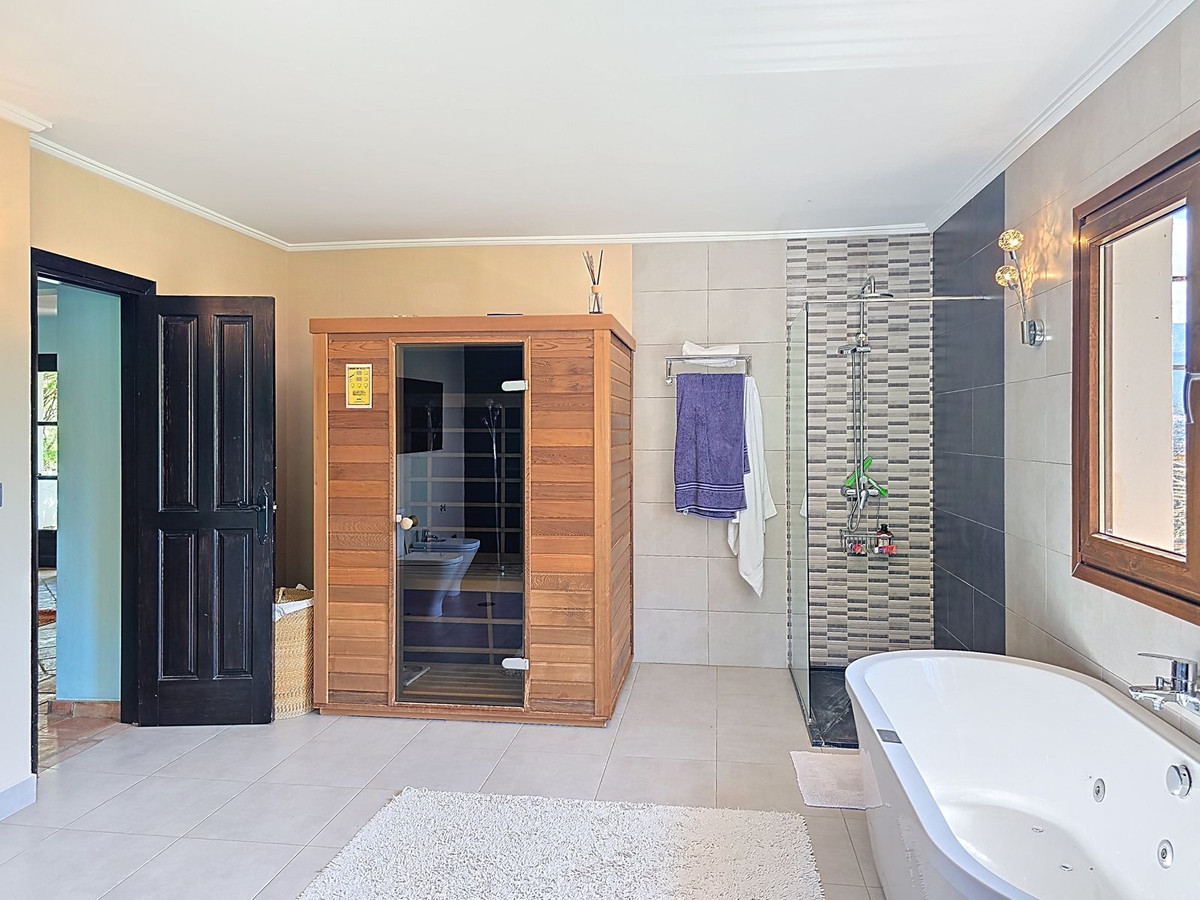 L'espace extérieur est un véritable paradis, avec plusieurs terrasses et une piscine privée rafraîchissante. Un atout unique est la cave à vin privée (bodega), située dans un espace souterrain naturel, où vous pourrez conserver vos vins préférés à température idéale. La villa allie durabilité et confort grâce à des panneaux solaires et une immense réserve d'eau de 160 000 litres.