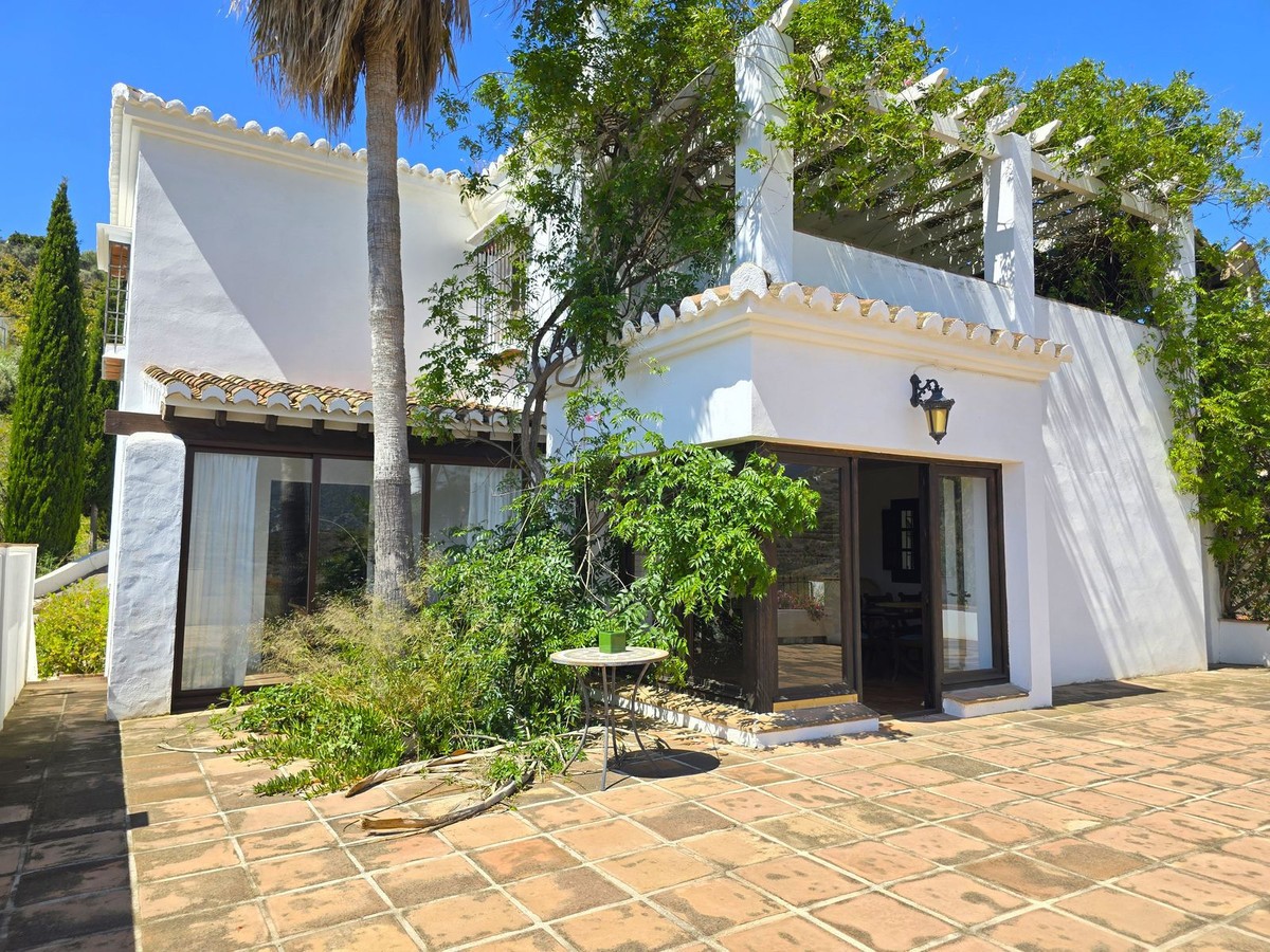 Laissez-vous charmer par cette villa espagnole typique, où architecture traditionnelle et confort moderne se conjuguent pour offrir une expérience de vie unique. La maison principale, indépendante, se compose de deux ailes harmonieusement reliées, entourées d'un jardin luxuriant planté d'oliviers et de figuiers, et offre une vue panoramique imprenable sur les villages blanchis à la chaux de Frigiliana et Nerja, avec les majestueuses montagnes d'Andalousie en toile de fond.