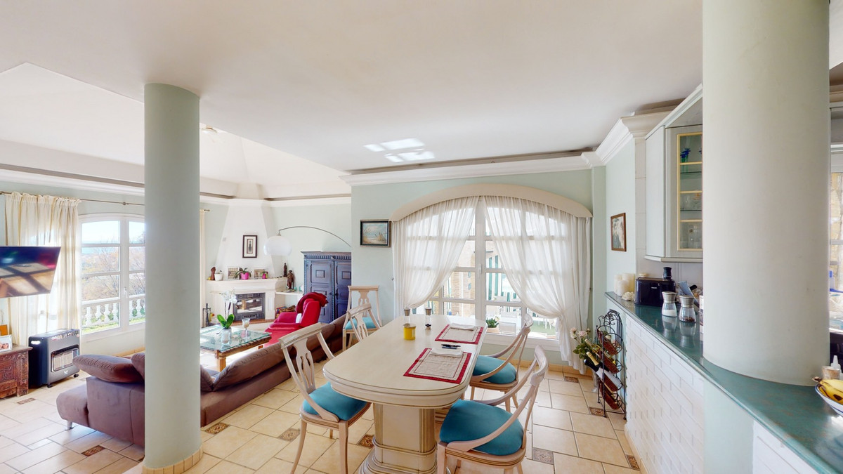 Vous avez toujours rêvé d'une grande et élégante demeure pouvant accueillir toute la famille ? Nous avons la propriété idéale pour vous. Cette villa d'environ 500 m² est divisée en deux maisons jumelées. Chaque logement dispose de sa propre entrée et de cinq niveaux. De plus, chaque partie de la maison comprend une dépendance pour les invités. Parfaite pour une famille nombreuse, un investissement locatif ou un club de tennis, les possibilités sont nombreuses. Un sous-sol spacieux et commun, avec buanderie, rangements et accès à l'extérieur, relie les deux parties de la villa. Des escaliers séparés mènent au rez-de-chaussée. De part et d'autre, on trouve l'entrée principale, des toilettes invités et un vaste séjour-salle à manger avec cuisine ouverte et une vue imprenable sur la côte. Le premier étage comprend une pièce pouvant servir de bureau et la suite parentale avec salle de bains privative, dressing et petite terrasse. Au deuxième étage, les duplex s'ouvrent sur une cuisine commune avec accès à l'étage supérieur. Un large escalier commun mène au dernier étage de la propriété, où se trouvent deux chambres avec salles de bains privatives. Les deux annexes indépendantes, situées au rez-de-chaussée, comprennent un espace de vie ouvert avec chambre, kitchenette et salle de bains. Le point fort de la propriété est sans conteste son espace extérieur. Juste à côté de la villa se trouve un bar couvert avec des sièges, idéal pour les réceptions été comme hiver. Pour se rafraîchir lors des chaudes journées d'été, plongez dans la piscine accueillante ou détendez-vous sur un transat face à la mer. Derrière une clôture recouverte de lierre, un court de sable ravira les amateurs de tennis. Au-dessus du court se trouve un bâtiment abritant un sauna, des douches et des toilettes. La propriété dispose de deux grands parkings. L'un, au niveau supérieur, donne accès à la cuisine commune et au sauna. L'autre, avec un abri voiture, se situe au niveau inférieur, où se trouvent les entrées principales des maisons jumelées, ainsi que la piscine et le court de tennis. La propriété est autonome grâce à son propre système d'approvisionnement en eau et d'assainissement. Un puits de 15 000 litres alimente le complexe et le court de tennis. Nous sommes ravis de pouvoir vous présenter prochainement cette propriété de rêve, en personne ou en visite virtuelle. Car ce lieu est unique, à l’image de notre Axarquía. En Andalousie. Sur la Costa del Sol. Ici, sous le soleil…
