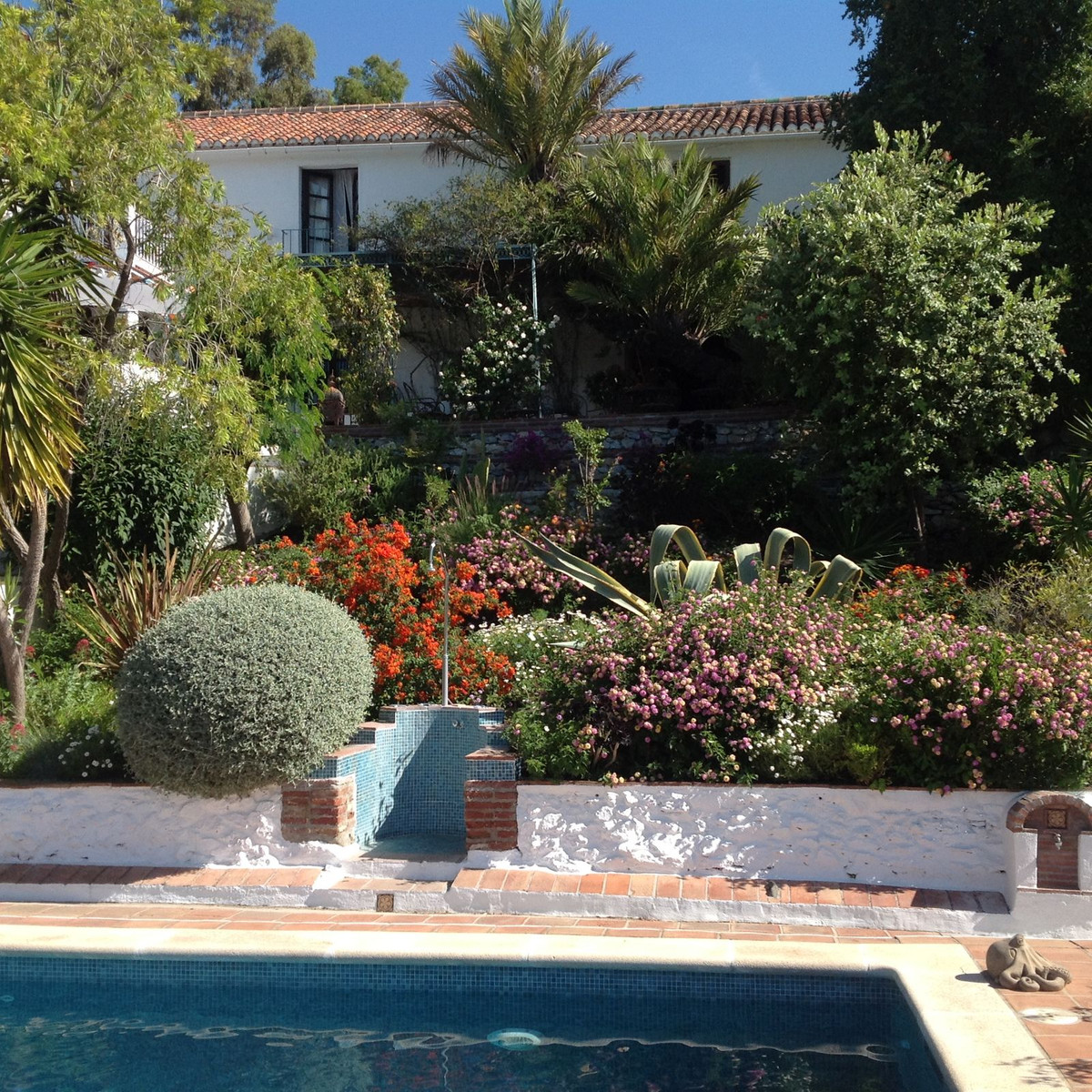La propriété, avec ses jardins méditerranéens, offre des vues imprenables et se compose de nombreuses terrasses, cours intérieures, oliviers, allées et bien plus encore. Une cabane perchée dans les arbres est même prévue pour les enfants. La piscine, située au centre, mesure 9,5 m x 4,5 m. Autour de la piscine, des transats avec parasols invitent à la détente sous le soleil andalou.