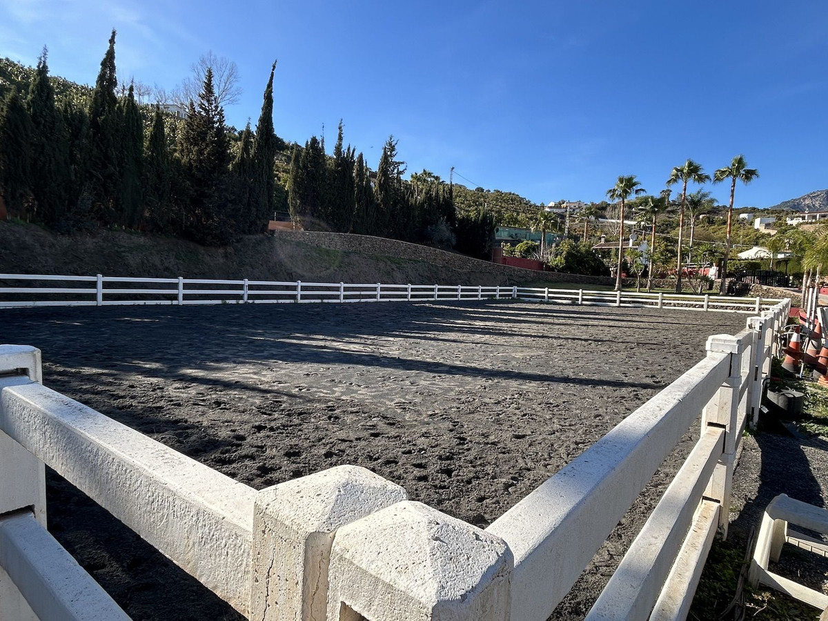 Cet immense complexe à couper le souffle est composé de trois villas (une indépendante et la principale est composée de deux villas en une) avec un total de 9 chambres, 11 salles de bains et deux bâtiments d'écuries séparés (13 boxes individuels de grande taille), deux piscines et trois paddocks, dont un de taille équestre d'environ 40x20m.