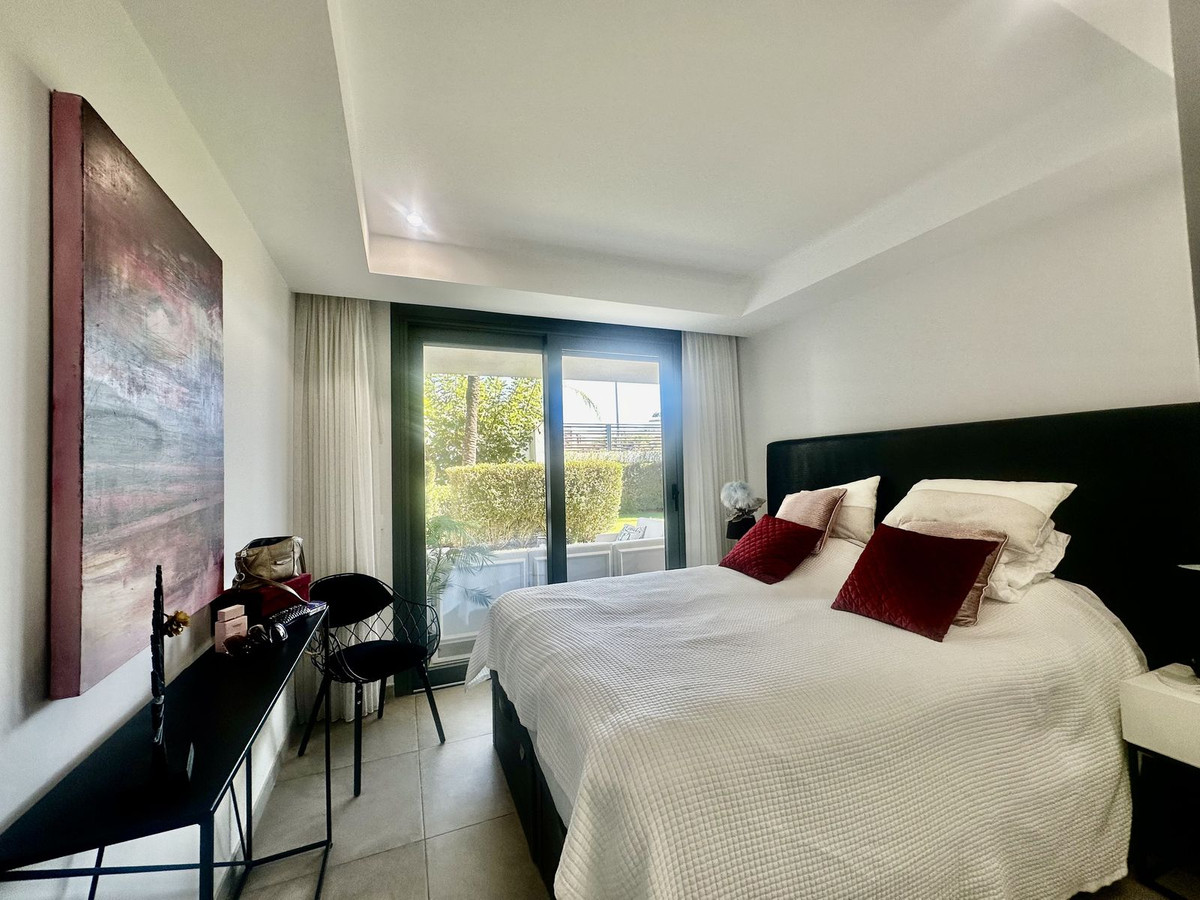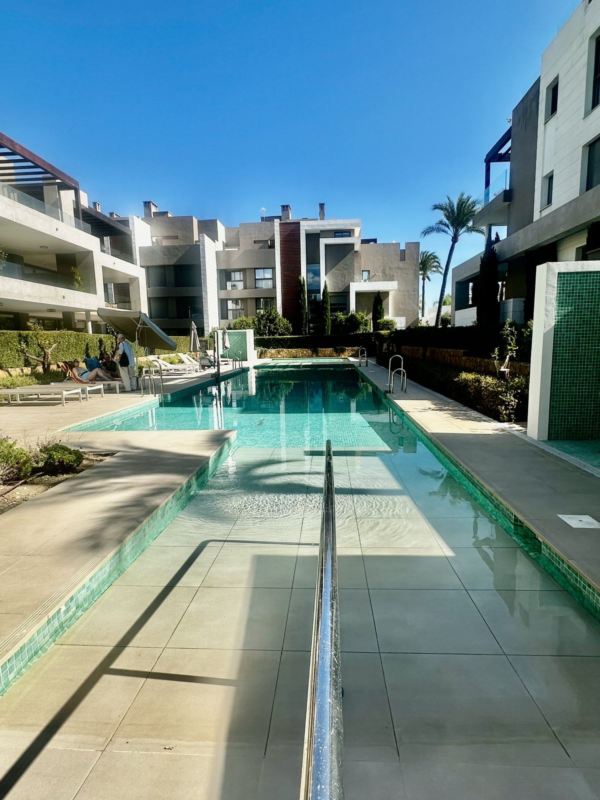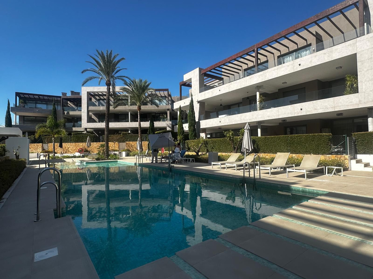 Appartement moderne et élégant au rez-de-chaussée avec 2 chambres et 2 salles de bains, situé dans le quartier recherché de Cancelada (Estepona), à seulement 15 minutes de Marbella, 10 minutes de Puerto Banús et 5 minutes de l'hôtel exclusif Anantara Villa Padierna et des terrains de golf Flamingos.