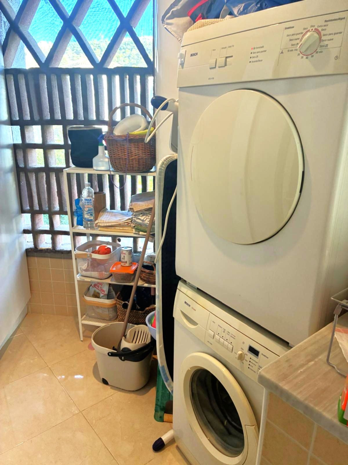 L'appartement est meublé avec une cuisine moderne entièrement équipée et une buanderie.