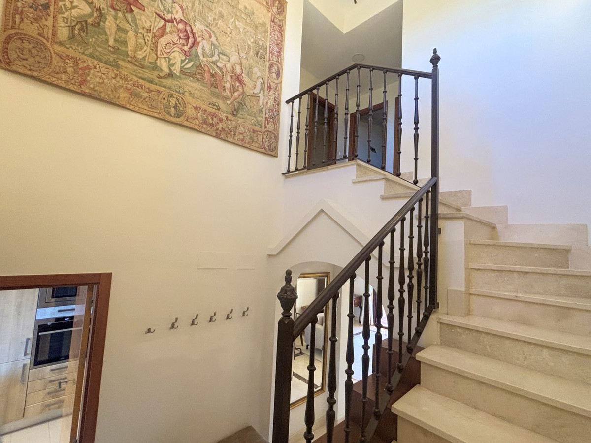 The first floor comprises three bedrooms and two bathrooms, one of them en-suite. The master bedroom has a private terrace with beautiful sea views, providing a peaceful and relaxing space.