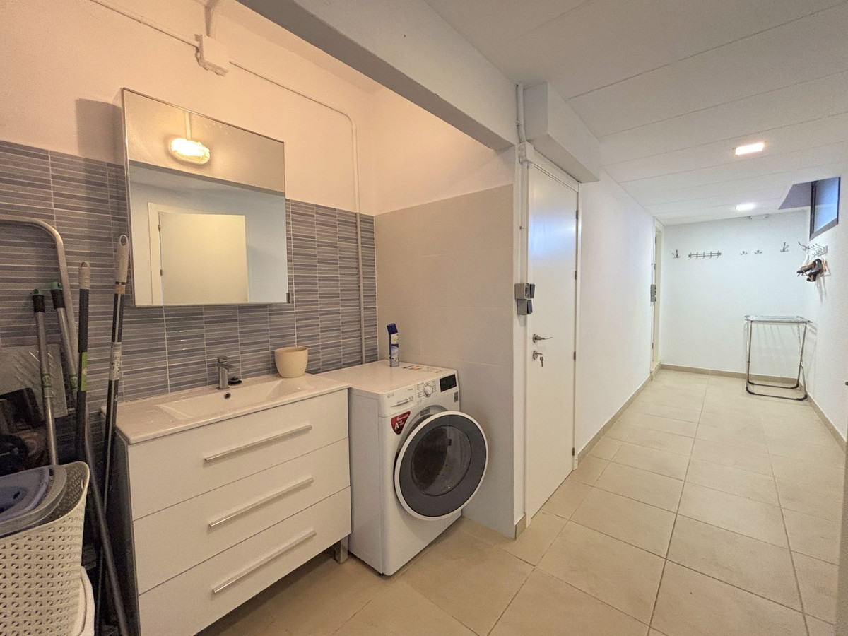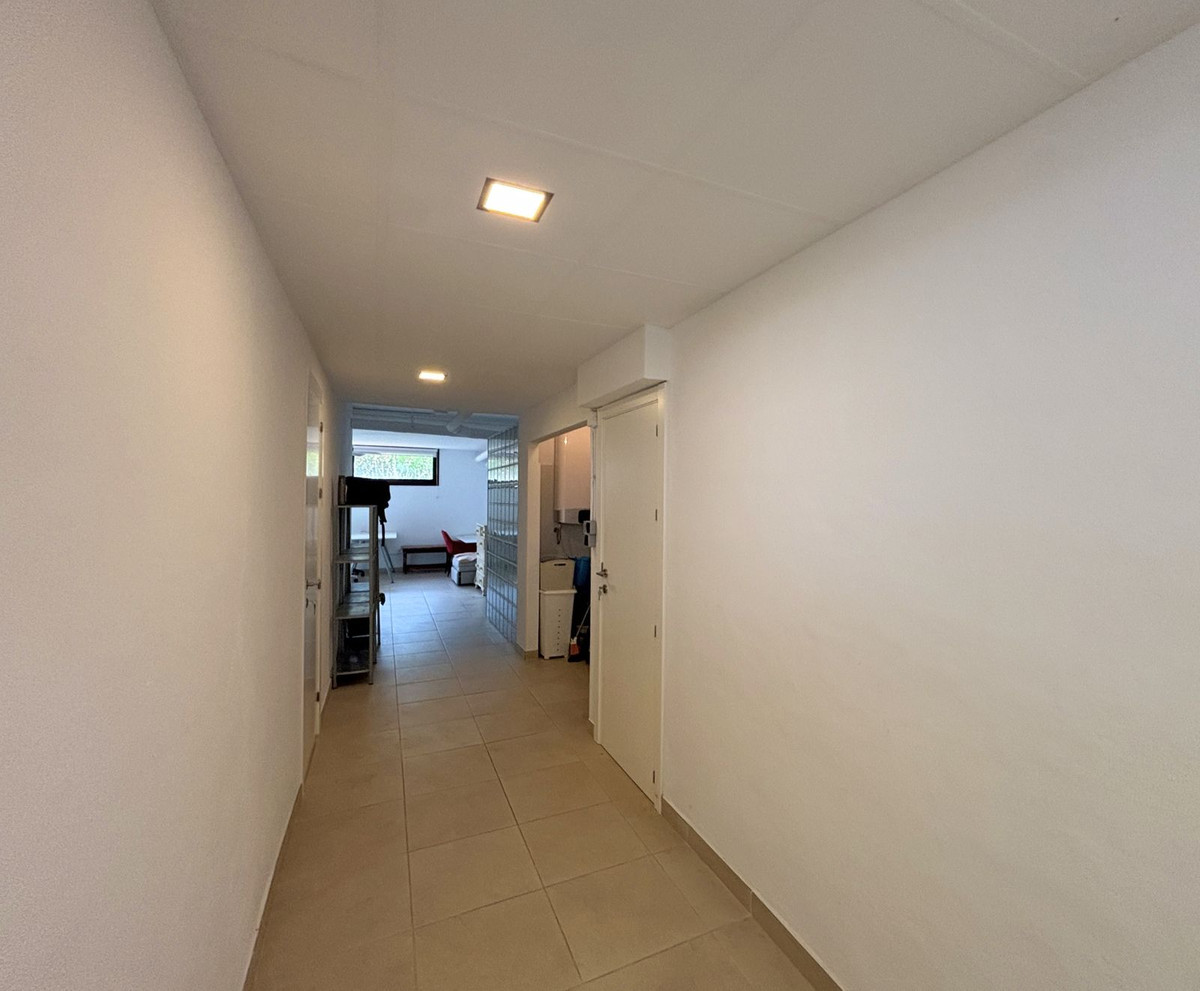 This bright home offers excellent quality finishes and features home automation. It includes a private underground garage currently adapted with a ventilated room, ideal for use as an office, gym, or guest area. On the main floor, there is a fully equipped kitchen, a guest toilet, and a spacious living-dining room that connects to an enclosed terrace with glass curtains, perfect for enjoying all year round.