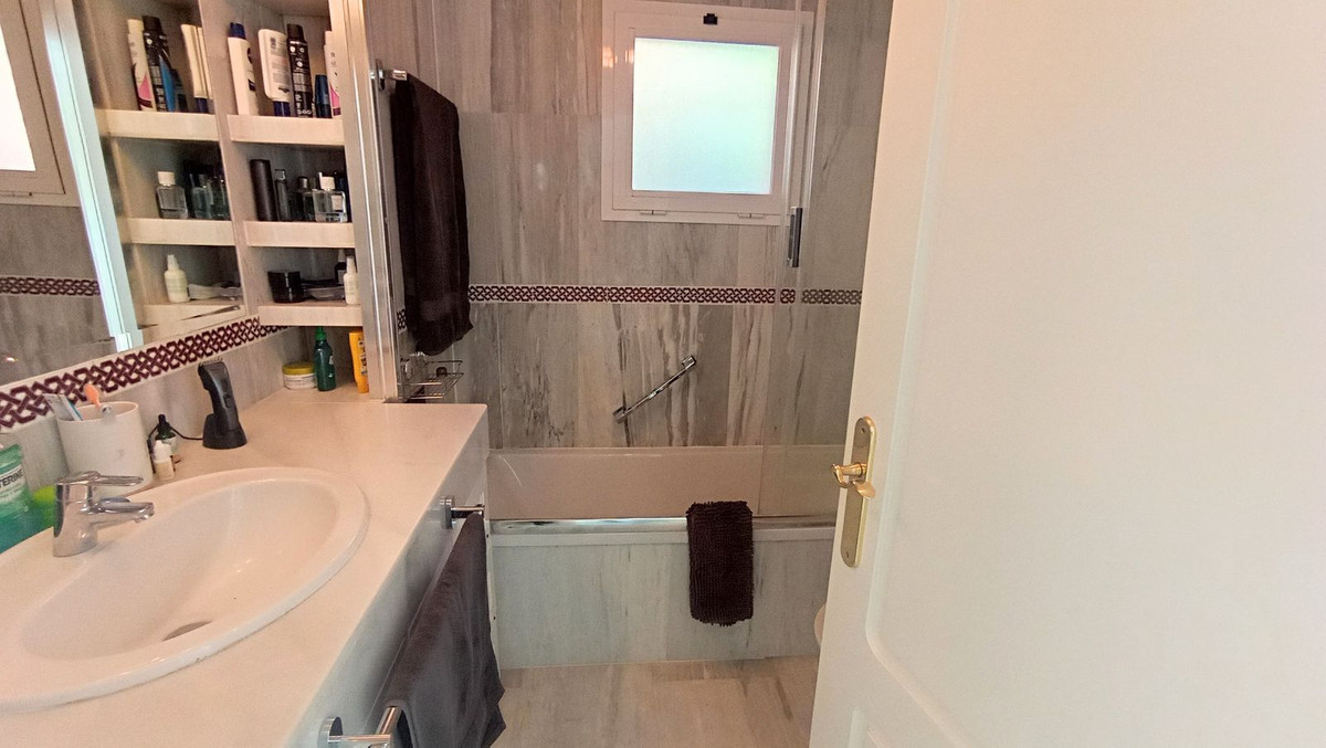 Stunning terraces with sea and mountain views. Over 60 square meters of covered and uncovered terraces. Immaculate two-story penthouse. Built-in interior staircase provides access to the upper level. The ground floor comprises two bedrooms and two full bathrooms, while the upper floor features a bedroom with a guest toilet. Terraces, views, and tranquility await. The complex boasts two pool and garden areas, as well as ample communal parking. The apartment is being sold almost fully furnished. Underground parking is available in the adjacent complex. The upstairs bedroom is more of a small living room, as it serves as a passageway to the large terrace. This is why we have listed three bedrooms.