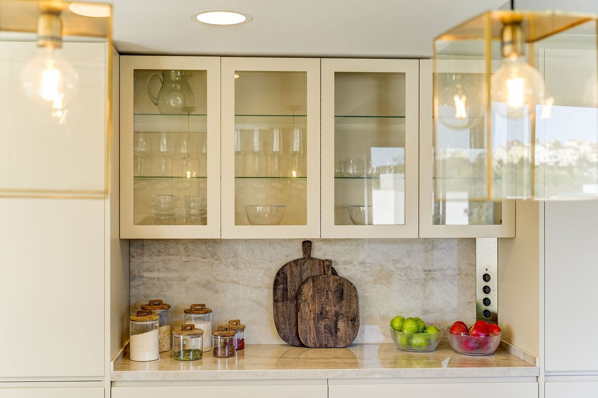 This elegant penthouse features three spacious bedrooms, three of them en-suite, a guest bathroom, a bright large 80m2 open-plan living and dining area, and a sleek fully equipped kitchen. Large floor-to-ceiling windows flood the space with natural light and open onto generous terraces with beautiful sea and green valley views — perfect for relaxing or entertaining.