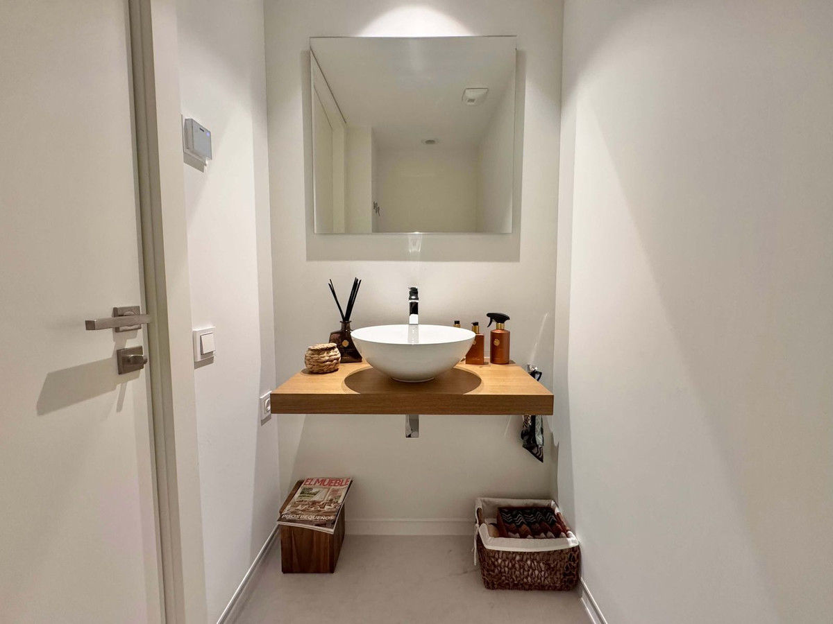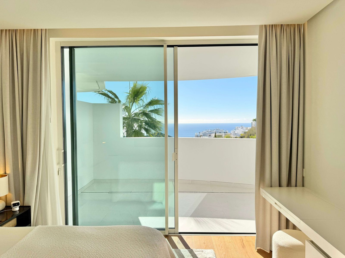 This spacious apartment with three bedrooms and two bathrooms is tastefully decorated in a warm, contemporary style. Large windows let natural light flow through the living areas and create a seamless connection with the large terrace offering sea views.