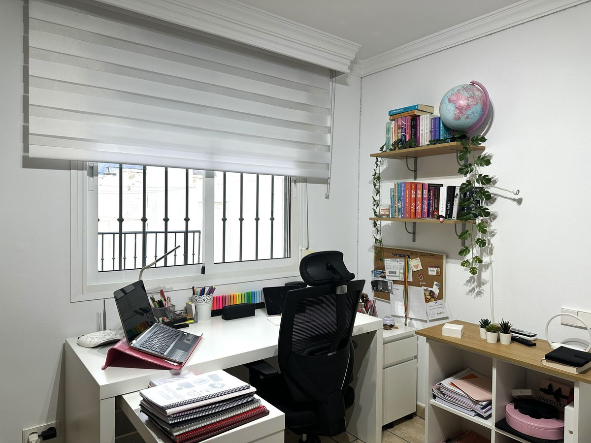 The property is located on a second floor without an elevator but with wide stairs which provides comfortable access. Divided into two floors + roof terrace, it is distributed on the first floor by a large living-dining room with a fireplace, a very large fully equipped kitchen with a laundry room, pantry, and table for 4 diners in case they prefer to eat in the kitchen, a room that is currently used as an office, a full bathroom, and a large balcony with tables and chairs.