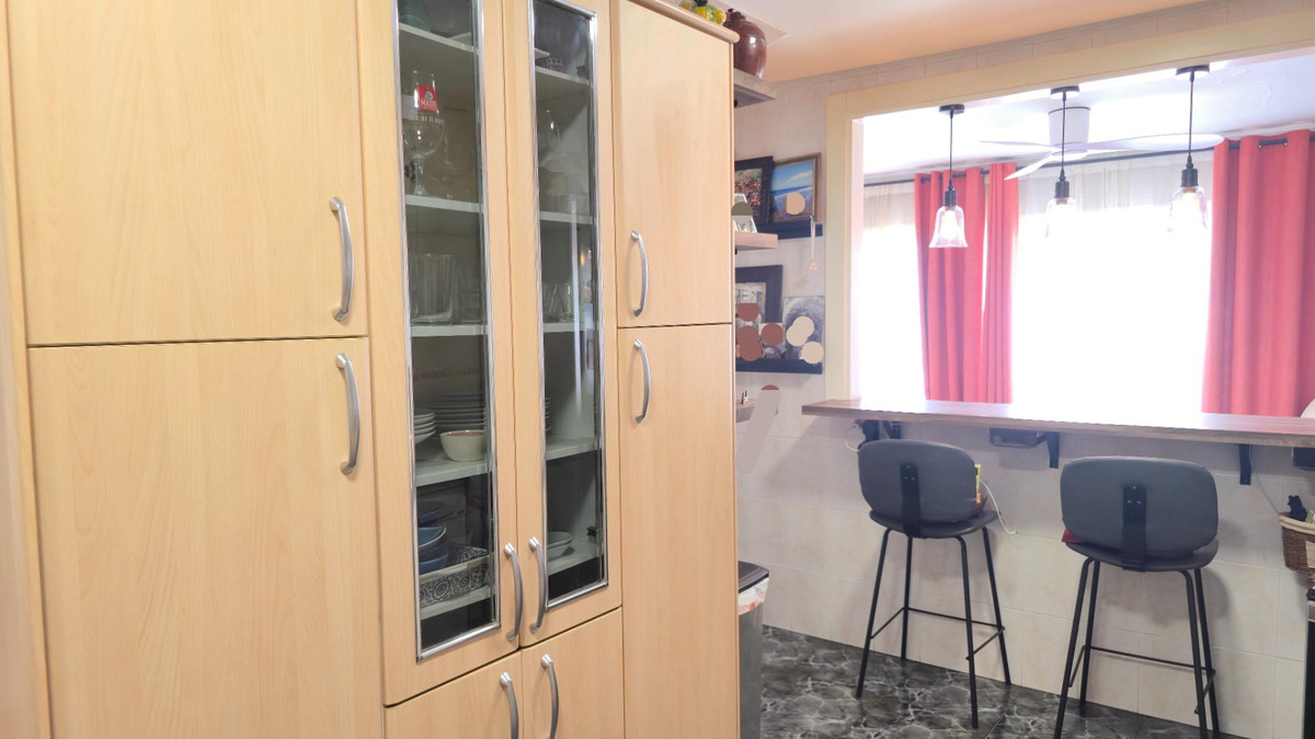 The home features three double bedrooms, all with large wardrobes, two full bathrooms, and a guest toilet. The living room is spacious and bright, with large windows that bring the space to life. The kitchen, semi-open and with a window, is integrated without losing its sense of independence. The entire property was renovated five years ago, so it is ready to move into.