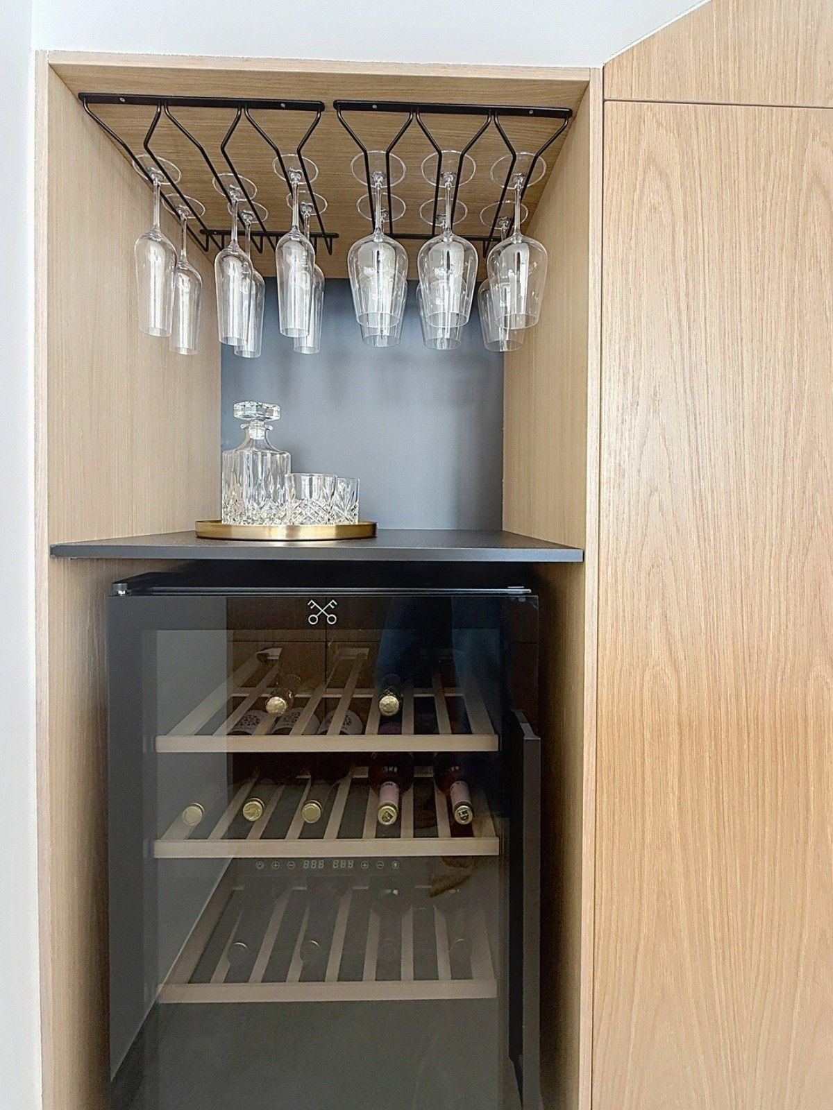 The designer kitchen features a built-in wine climate cabinet, premium Samsung appliances and a functional layout that combines style and comfort. On this level, you will also find two guest bedrooms sharing a full bathroom, a separate guest toilet and a discreet utility room.