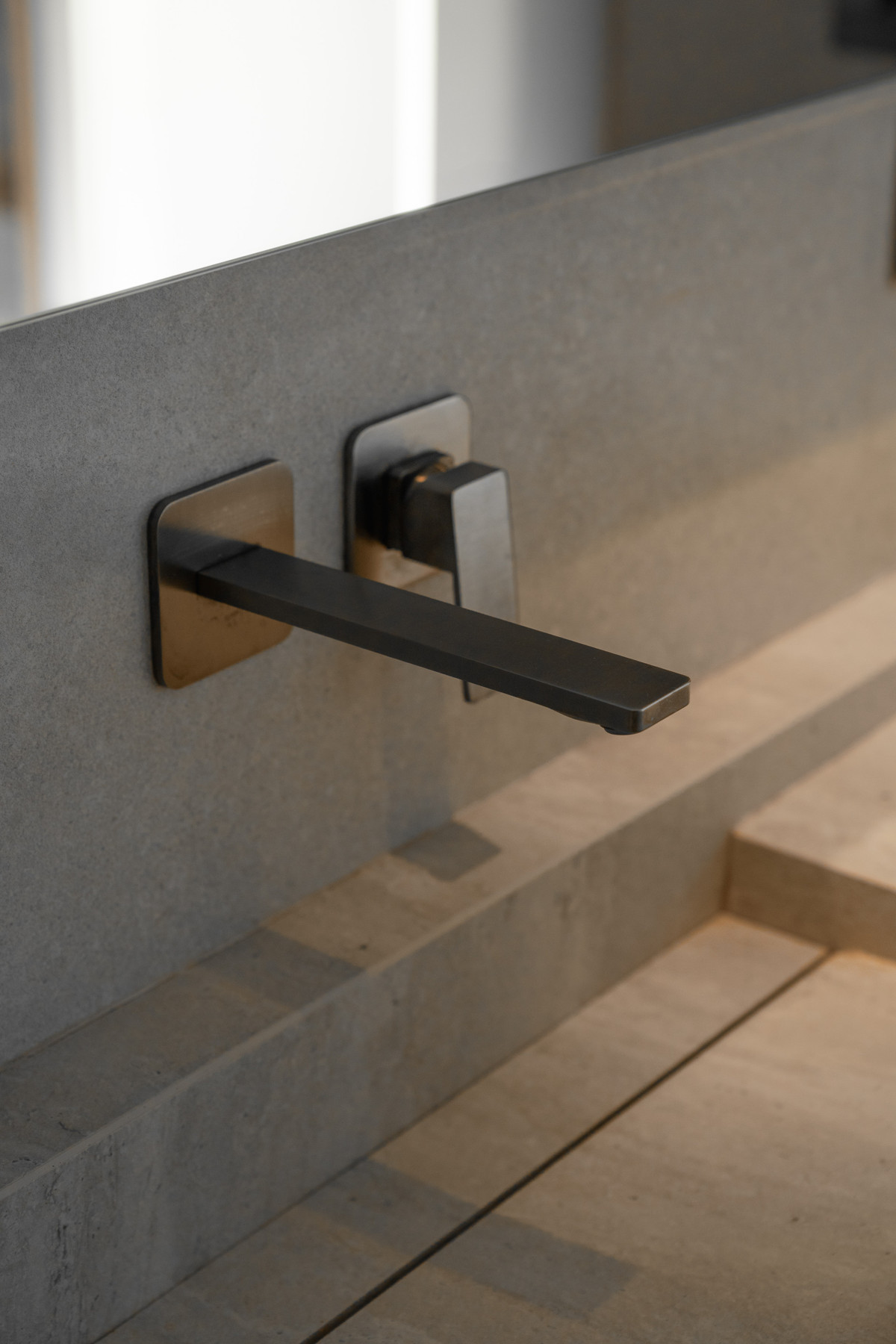 Entering inside, you’ll find three bedrooms, each with its own full bathroom, along with a large dining table and a spacious living area with custom furniture-made by Aldecora.