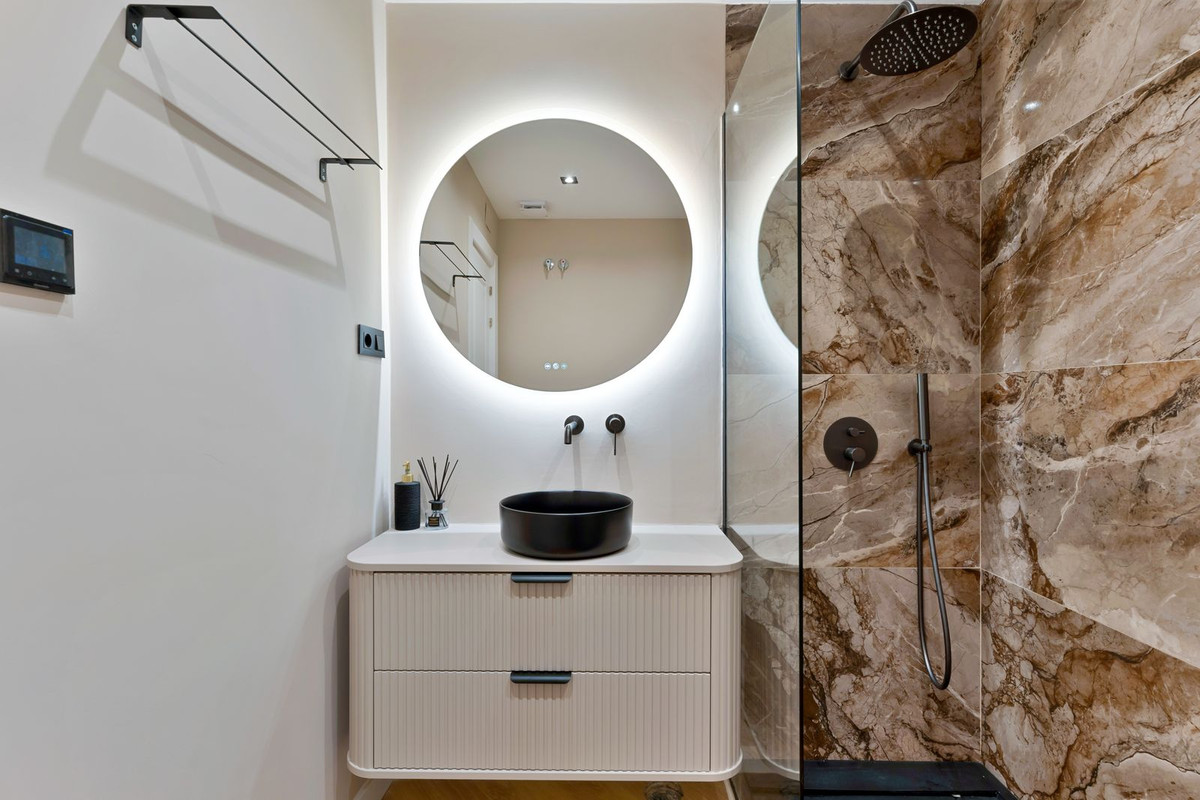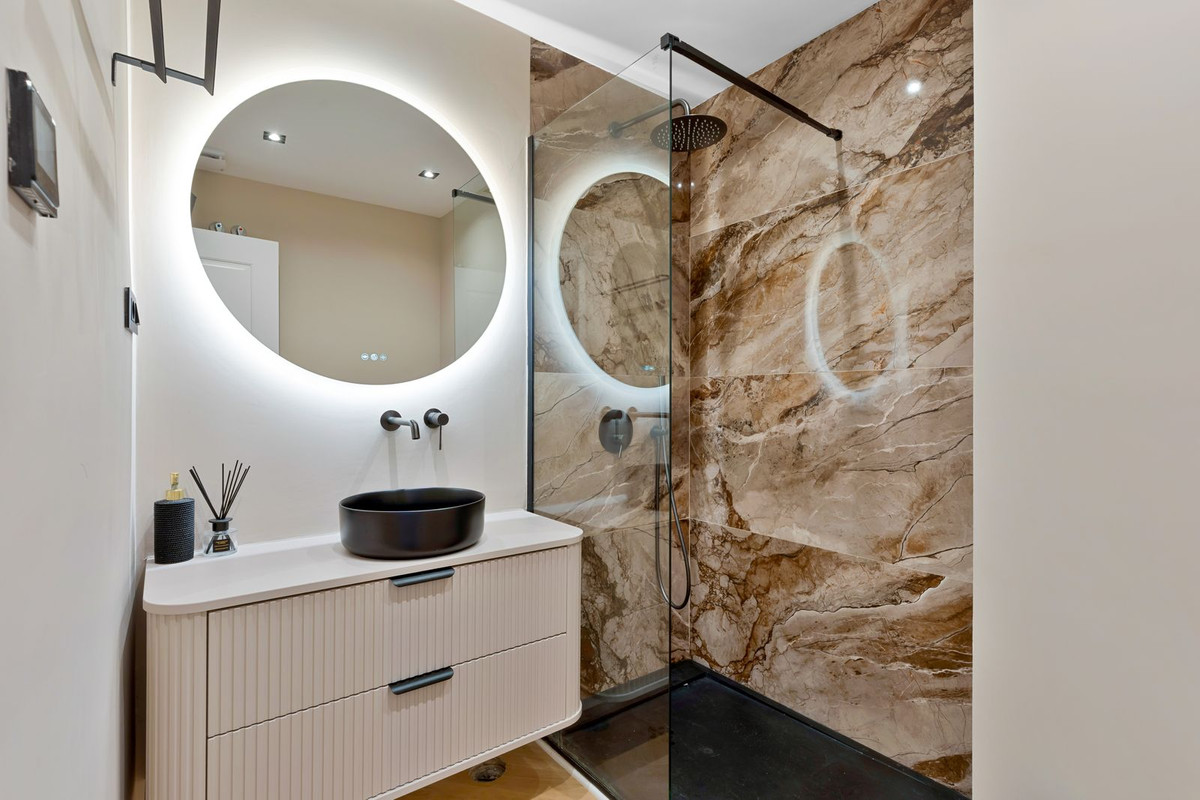 Le dernier étage abrite une chambre spacieuse de 20 m² avec salle de bains privative, conçue pour un confort et une intimité absolus. De grandes baies vitrées offrent une vue panoramique imprenable, inondant l'espace de lumière naturelle et créant une transition harmonieuse avec l'extérieur. La suite est complétée par deux terrasses. L'une surplombe la piscine commune et offre une vue imprenable sur la mer, tandis que l'autre offre une vue magnifique sur les montagnes de La Concha, idéale pour admirer le lever et le coucher du soleil en toute tranquillité.