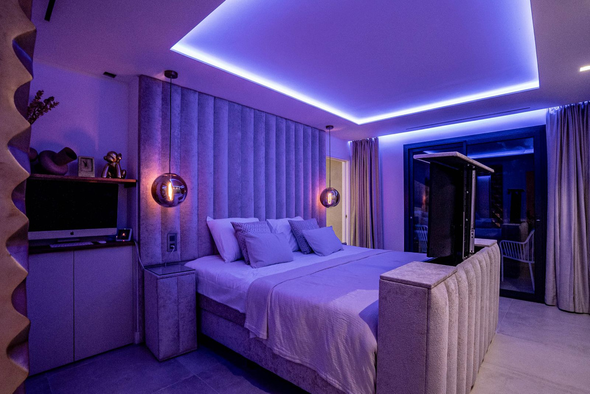 Le niveau principal de la maison vous accueille avec de vastes espaces ouverts inondés de lumière naturelle, avec des fenêtres du sol au plafond qui mettent en valeur le magnifique environnement. Le salon se prolonge harmonieusement par une salle à manger, pouvant accueillir confortablement huit convives, et une cuisine Aster de haute qualité, parfaite pour les amateurs de cuisine. Avec un accès direct à tous les espaces extérieurs, y compris les terrasses privées, l'intérieur se fond sans effort avec l'extérieur.