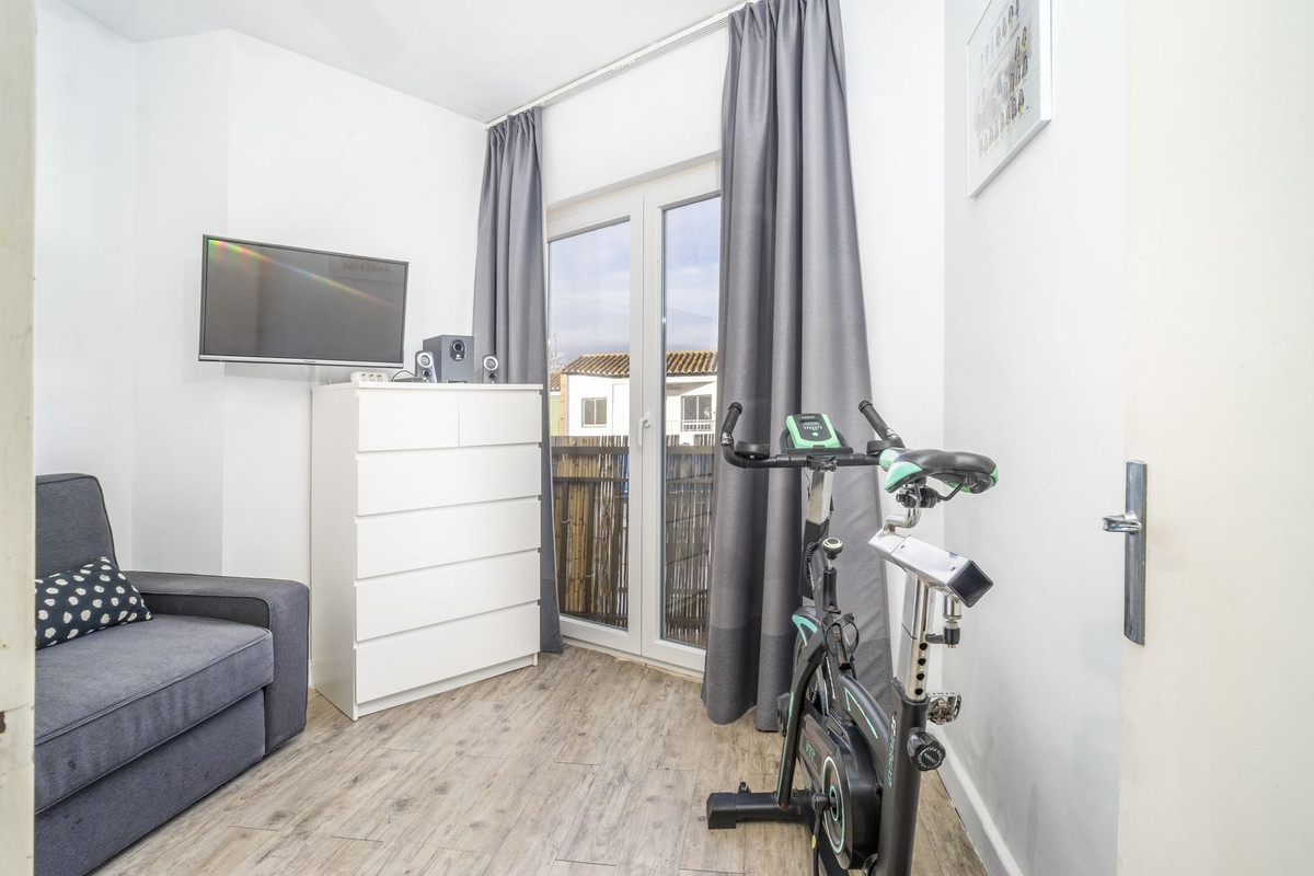 The kitchen is fully equipped with appliances (oven, ceramic hob, washing machine, dishwasher, refrigerator, etc.) and includes an integrated utility room. It is being sold fully furnished and features air conditioning and an alarm system, offering comfort and security. The monthly community fee is €25.