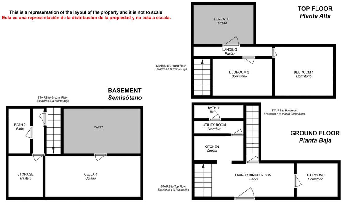 The top floor features two bedrooms and a superb terrace with panoramic views across the valley to the mountains.