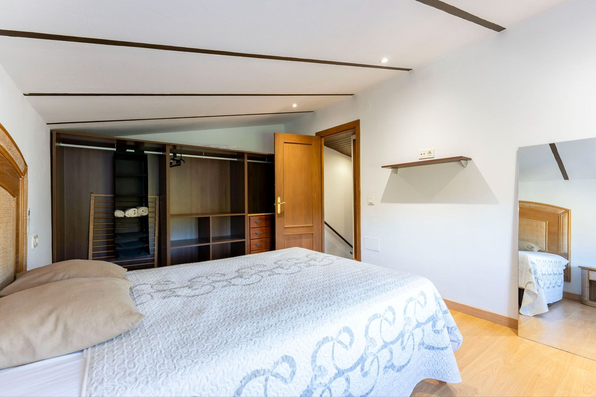 The house is distributed over 2 floors and offers and open plan kitchen-living room, 3 bedrooms, (2 of the bedrooms are located are located on the 1st floor and offer vaulted ceilings) 2 bathrooms and a small garage. There is AC in the master bedroom and living room.