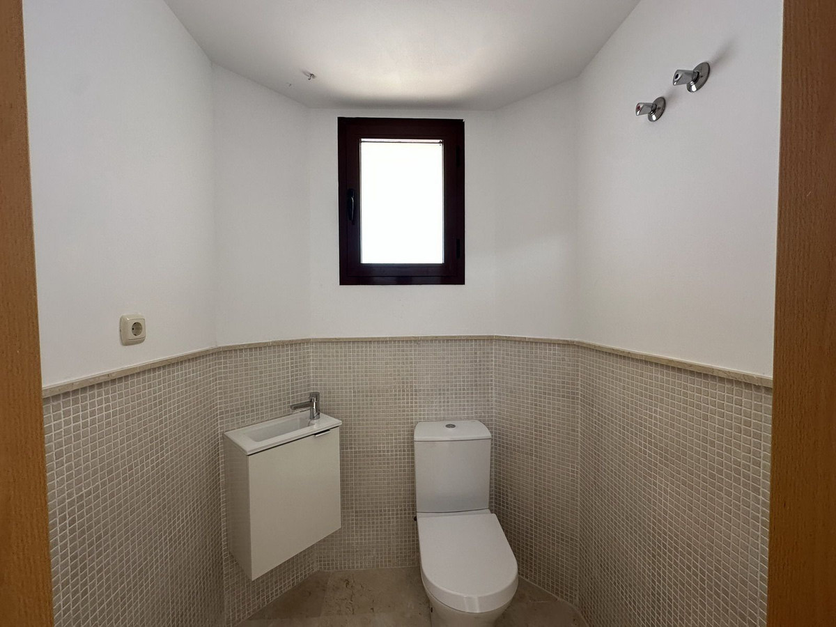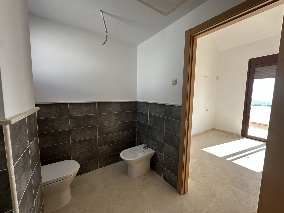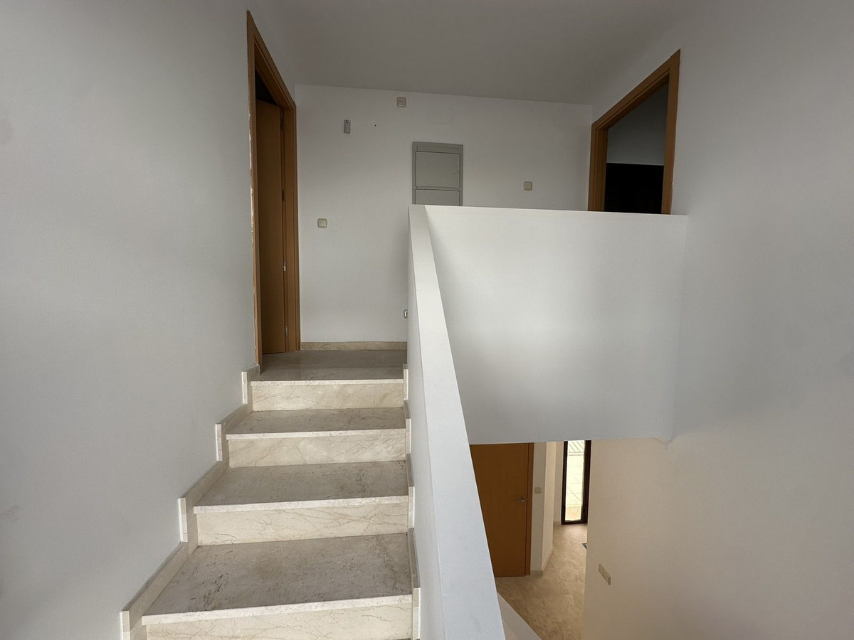 Upper floor: the sleeping area, with an entrance hall, landing, two bedrooms with fitted wardrobes, and two full bathrooms, offering privacy and comfort. It also features a large open terrace, ideal for enjoying the Costa del Sol climate and impressive panoramic views.
