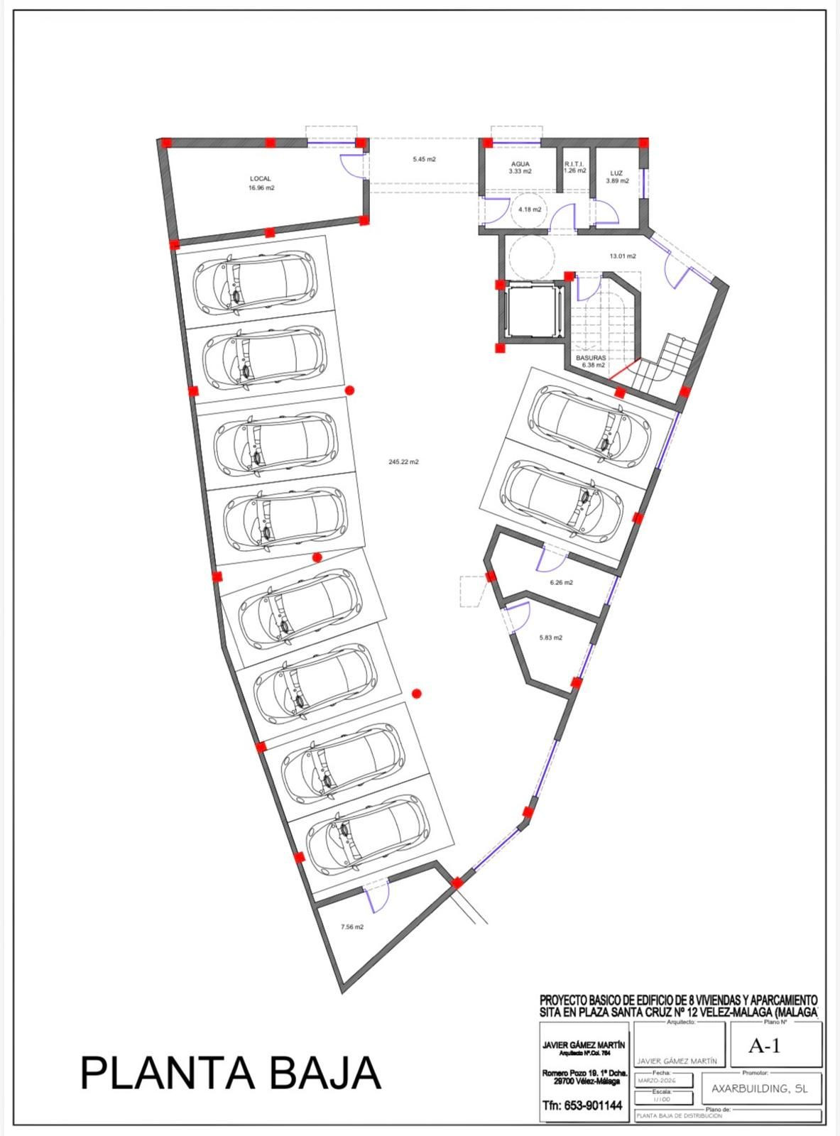 Plot of 385 m² for sale located in Plaza Santa Cruz, Vélez-Málaga, with the possibility to build a residential apartment building comprising a ground floor for parking, first floor, and second floor.