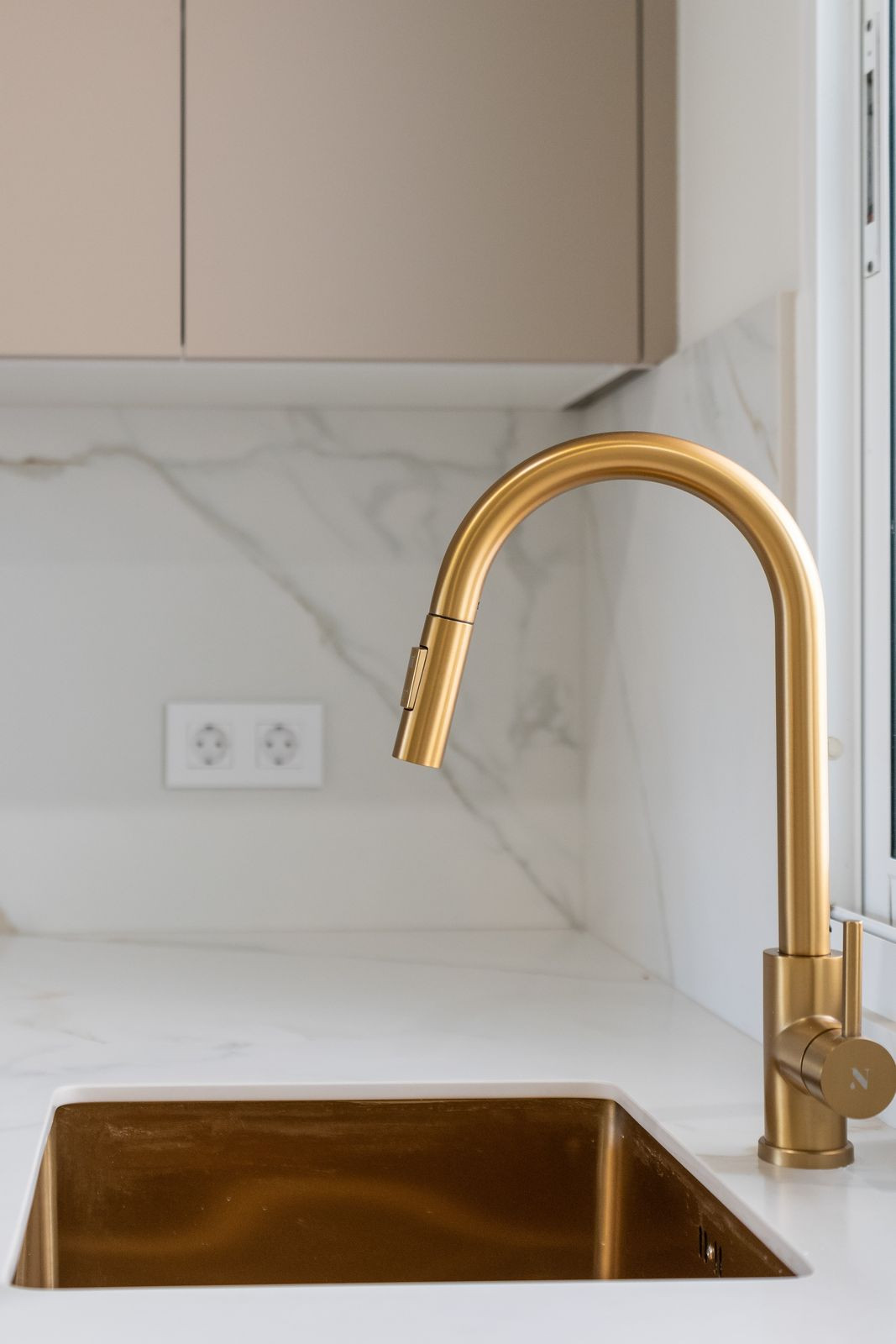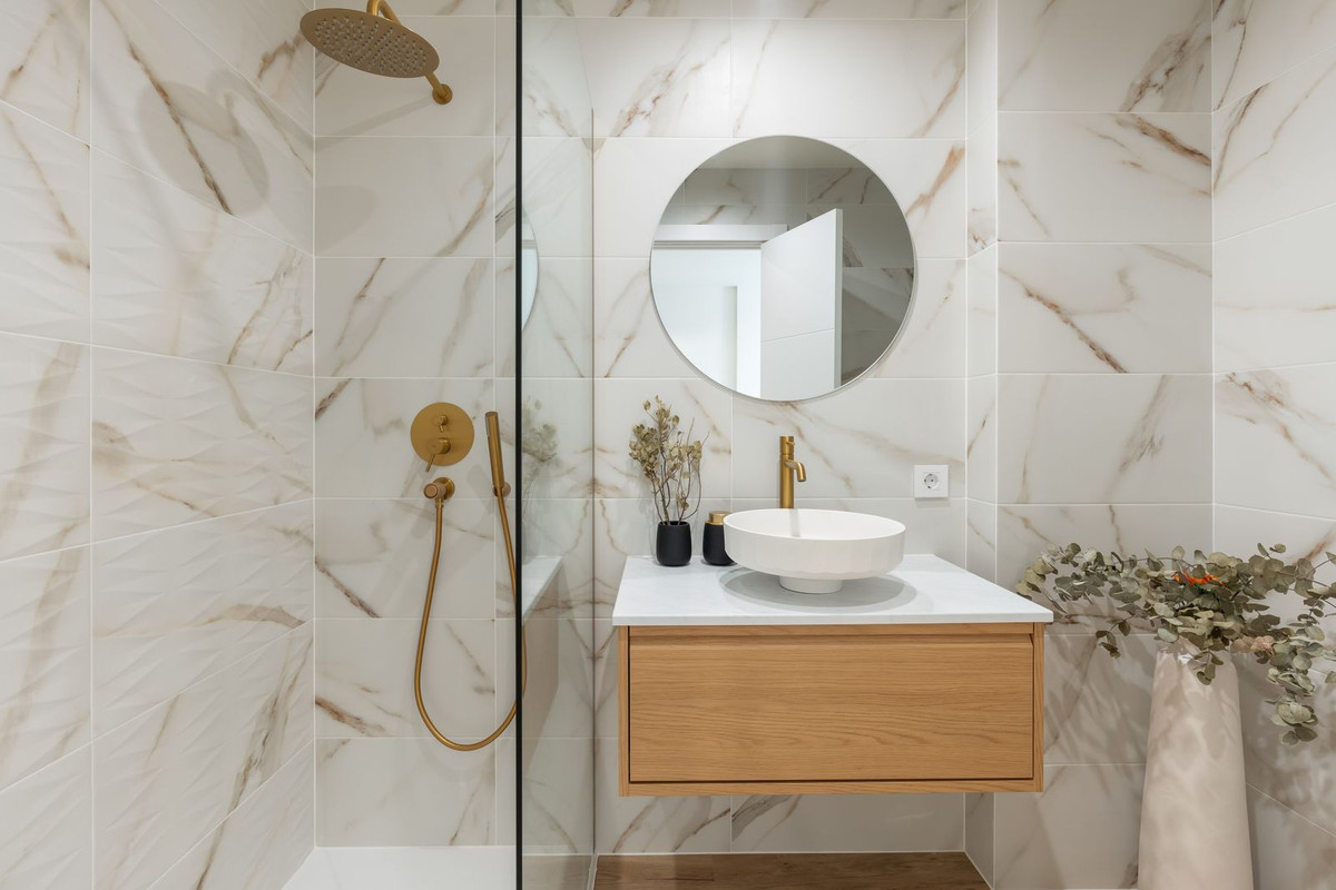 As you step inside, you are greeted by a bright, open-plan living area where style and functionality flow seamlessly. The kitchen is equipped with elegant natural Calacatta marble worktops and contemporary fittings, perfectly complementing the stylish shower room and high-quality finishes throughout the home. Air conditioning in the living area and main bedroom ensures year-round comfort, while a ceiling fan in the second bedroom adds gentle natural ventilation.