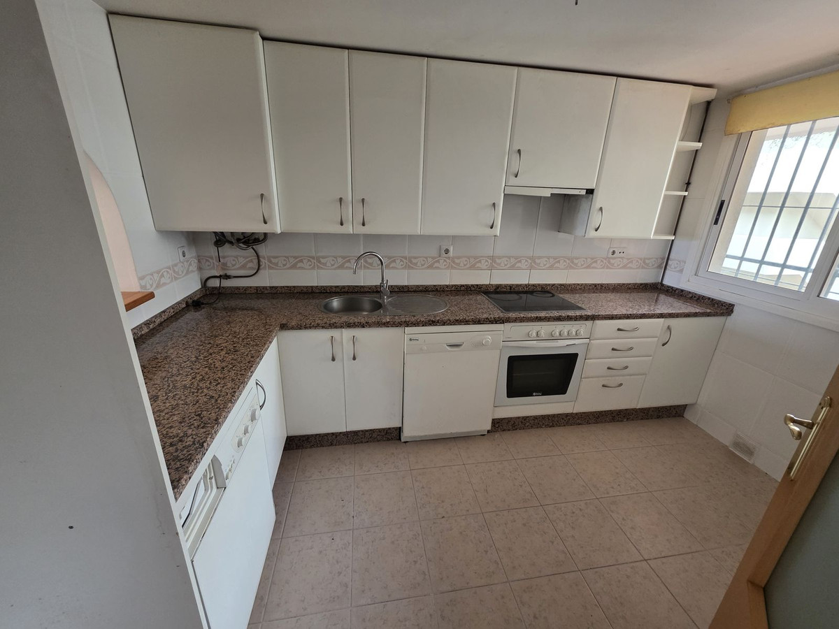 The property offers a spacious and bright entrance hall leading to the dining room and a spacious living room with direct access to a large terrace, with the possibility of glazing. It has two bedrooms, both with access to the terrace, and two bathrooms, one of which is en-suite in the master bedroom. The separate kitchen is fully equipped and has a window to the outside.