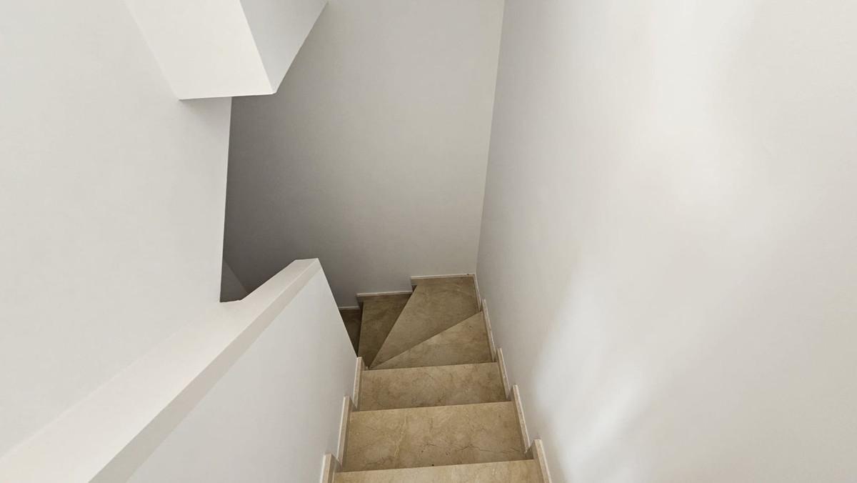 The property has three floors. The basement level offers a large versatile space that can be adapted as a games room, gym, or storage area. The ground floor features a bright living-dining room, a fully equipped kitchen, a utility room, and a guest toilet, as well as a covered porch or terrace ideal for enjoying the Costa del Sol climate.