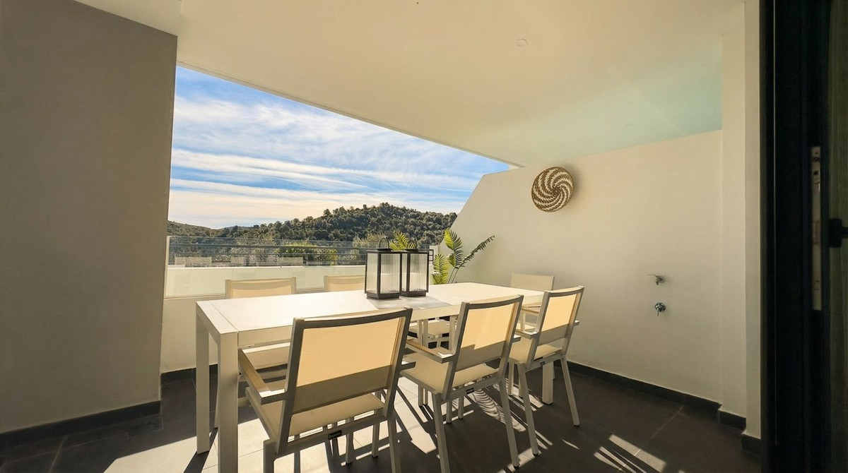 Additionally, there is a second north-facing terrace with views of the Mijas hills and the resort’s lagoon, ideal for enjoying the evening sun.
