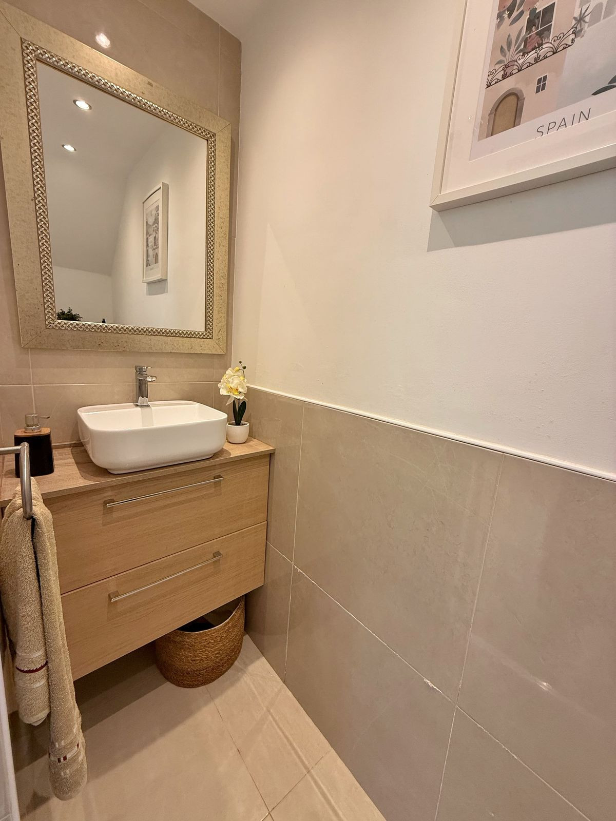 It features 2 exterior bedrooms with fitted wardrobes, with the master bedroom offering an en-suite bathroom and direct access to a private terrace. The house also includes 2 full bathrooms and a guest toilet.