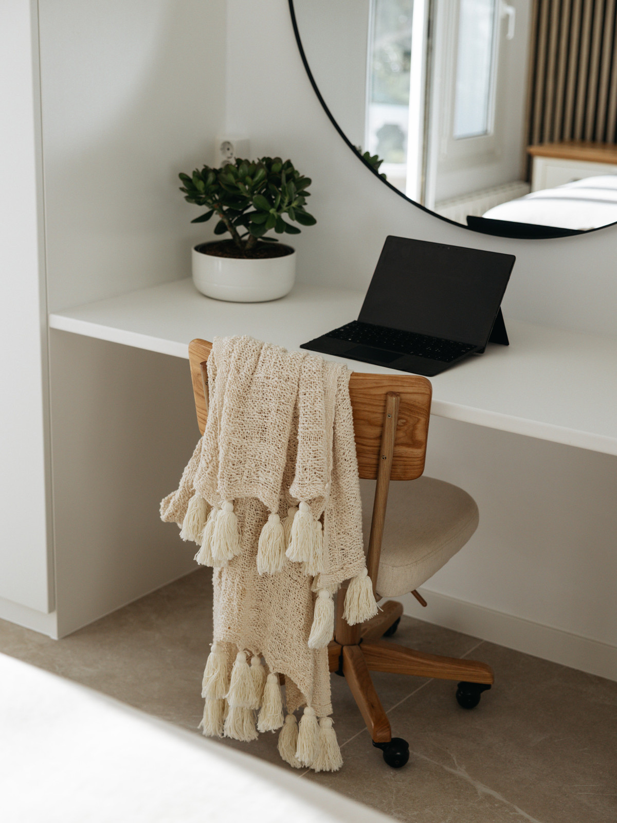 Just outside the kitchen window, a charming lemon tree adds an authentic Mediterranean touch, blending beautifully with the home’s clean Nordic design. From this level, you have direct access to a private terrace, ideal for alfresco dining, relaxing, and enjoying spectacular sunsets over the golf valley.