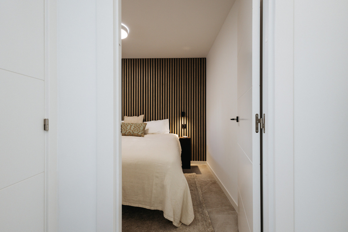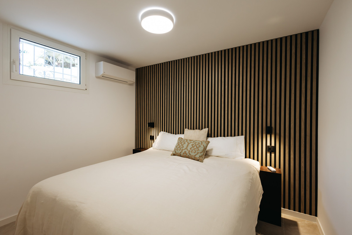The master bedroom opens directly onto a private outdoor chill-out area with sun loungers, lush greenery, and a tranquil ambiance—your own secluded retreat to fully embrace the Costa del Sol lifestyle.