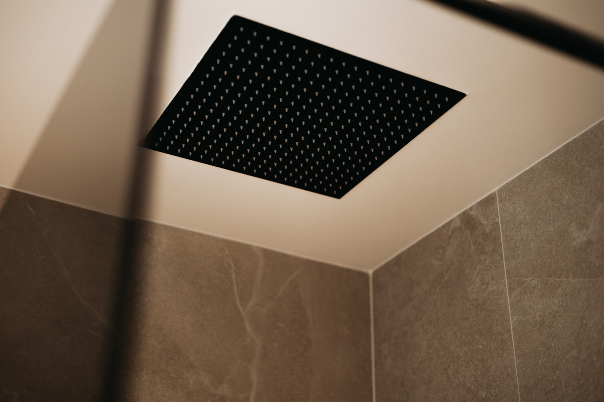 The lower level features two generously sized bedrooms with double beds, built-in closets, and a spacious storage room. The stylish bathroom is fitted with a luxury rain shower, underfloor heating and includes both a washing machine and dryer for added convenience.