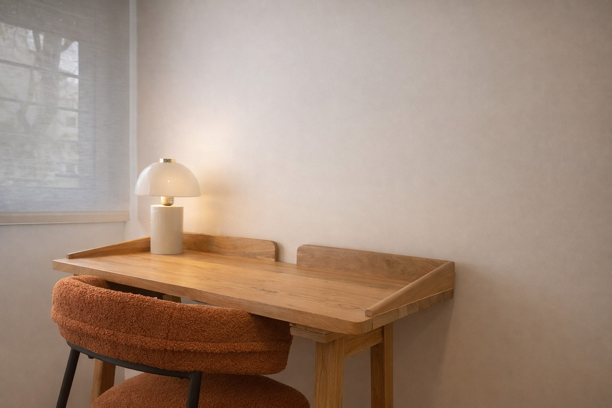 The apartment features three spacious bedrooms, all with new, lined, and illuminated built-in wardrobes, as well as ceiling fans and a powerful air conditioning system (8,000 frigories) that ensures maximum comfort throughout the year. The master bedroom has an en-suite bathroom with a modern shower and access to a balcony overlooking the interior of the complex, while the other two bedrooms—one currently used as a dressing room—share a second full bathroom. Both bathrooms stand out for their complete renovation with top-quality finishes, each featuring exterior windows that provide perfect ventilation. They include sliding glass shower screens designed to offer greater comfort and elegance.