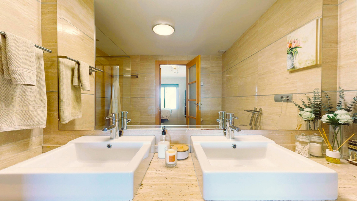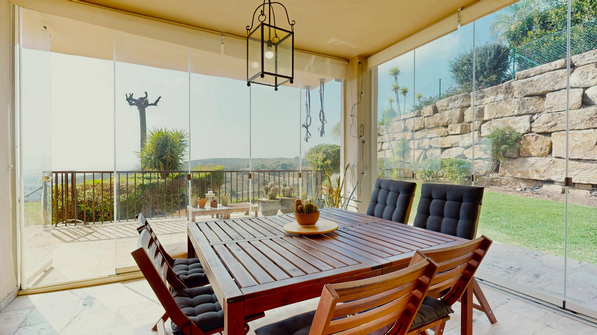 If you are looking for a private retreat where privacy and views take center stage, this corner ground-floor apartment is your property. Positioned in a prime spot within the complex, it stands out for its private garden and a glass-enclosed terrace that functions as a second living room overlooking the sea—guaranteeing spectacular sunsets.