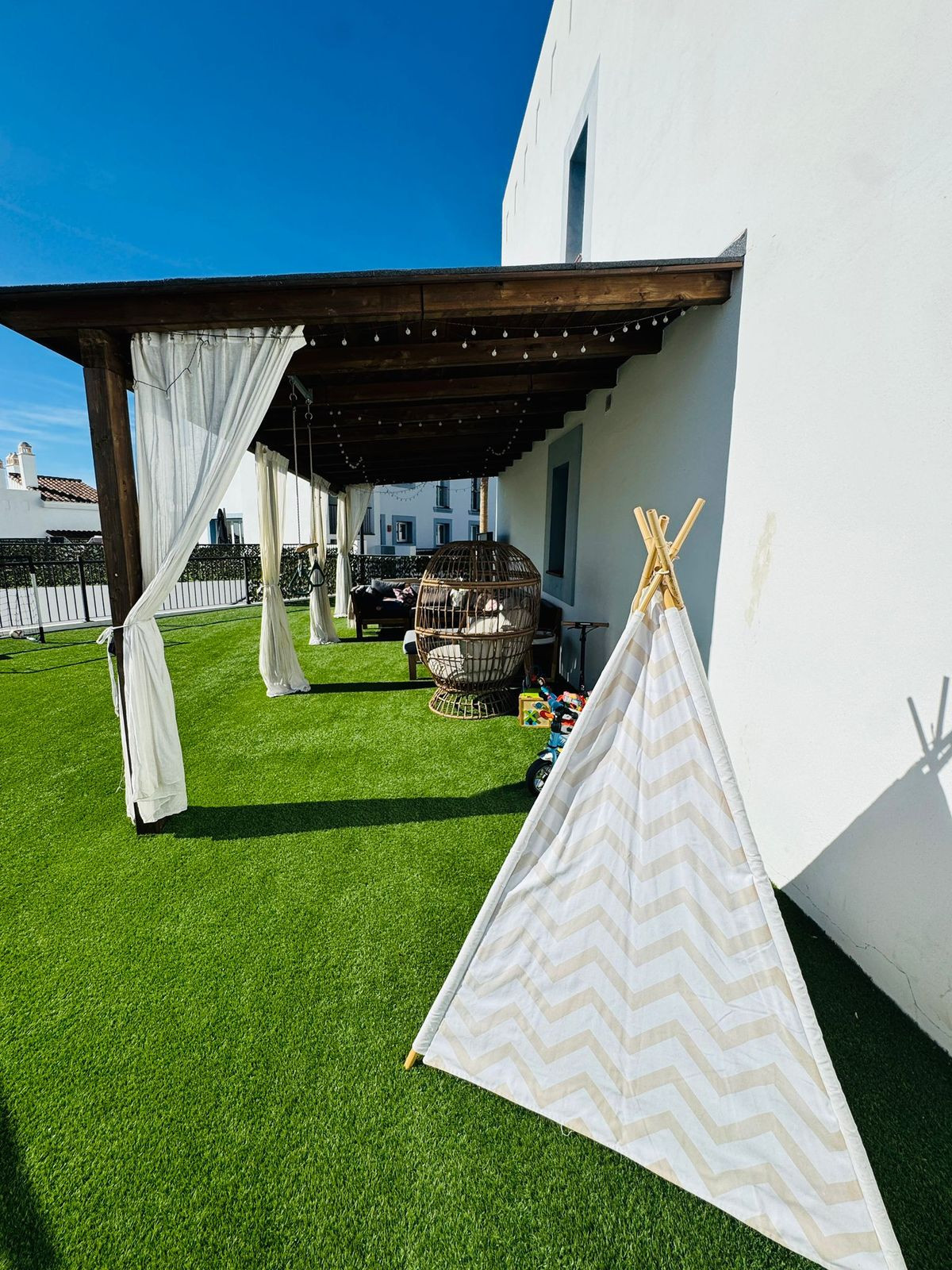 Paraíso Pueblo offers an exceptional range of amenities, including 8 swimming pools in total, with 2 infinity pools and 1 semi-Olympic pool, as well as a gym, coworking space, restaurant, and a beautiful Japanese garden area, where residents can also enjoy peaceful walks with their pets. The community is well maintained and known for its friendly international residents.