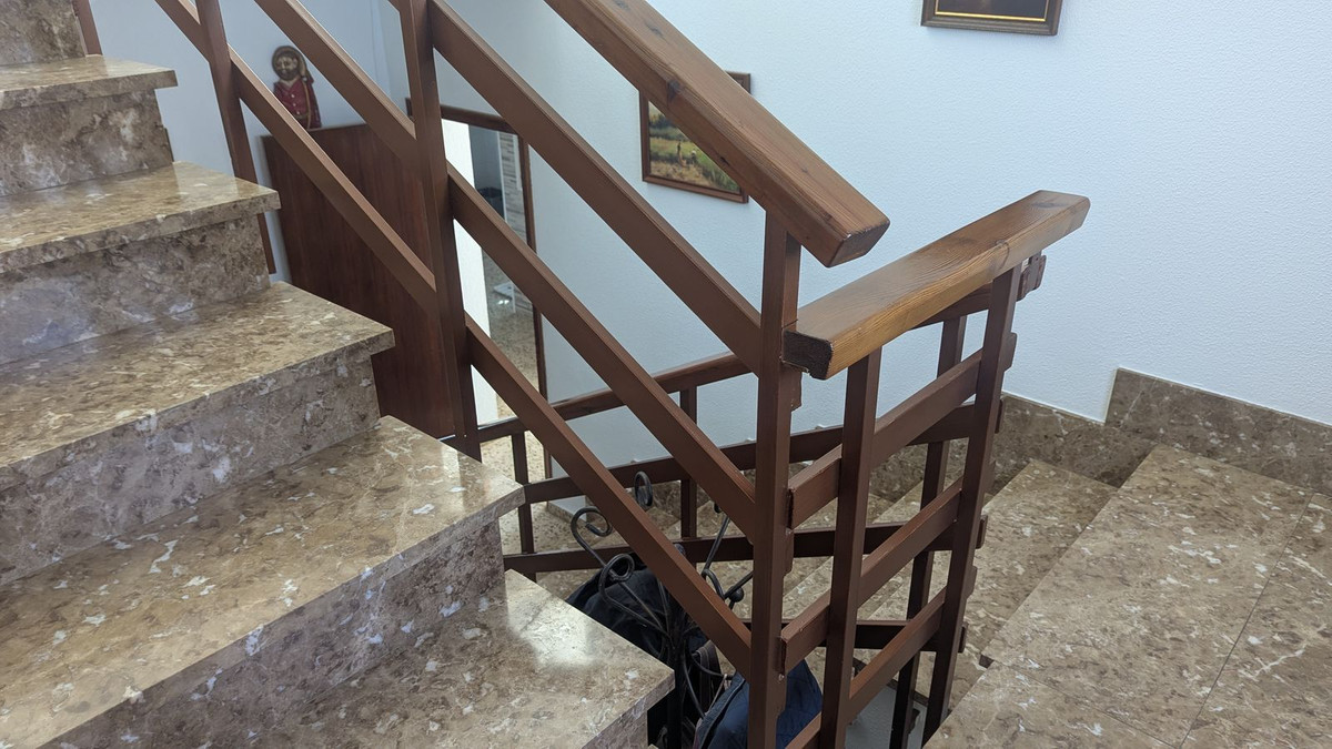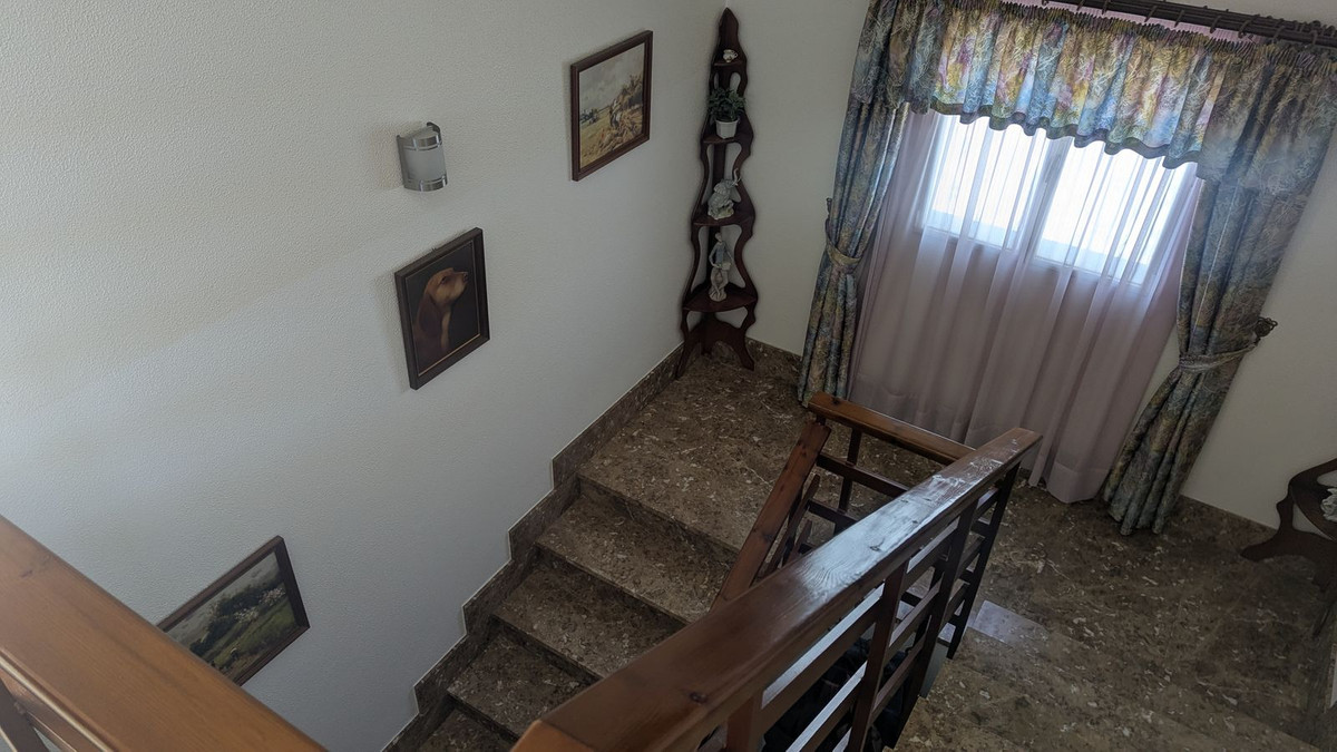 On the ground floor, you will find a cosy living room, an independent kitchen, two bedrooms and a full bathroom. The upper floor, accessed via a wide and comfortable staircase, houses a spacious living room with a large balcony plus two bedrooms with built-in wardrobes and a second full bathroom, offering a perfect space for large families or for those who need an office or guest area.