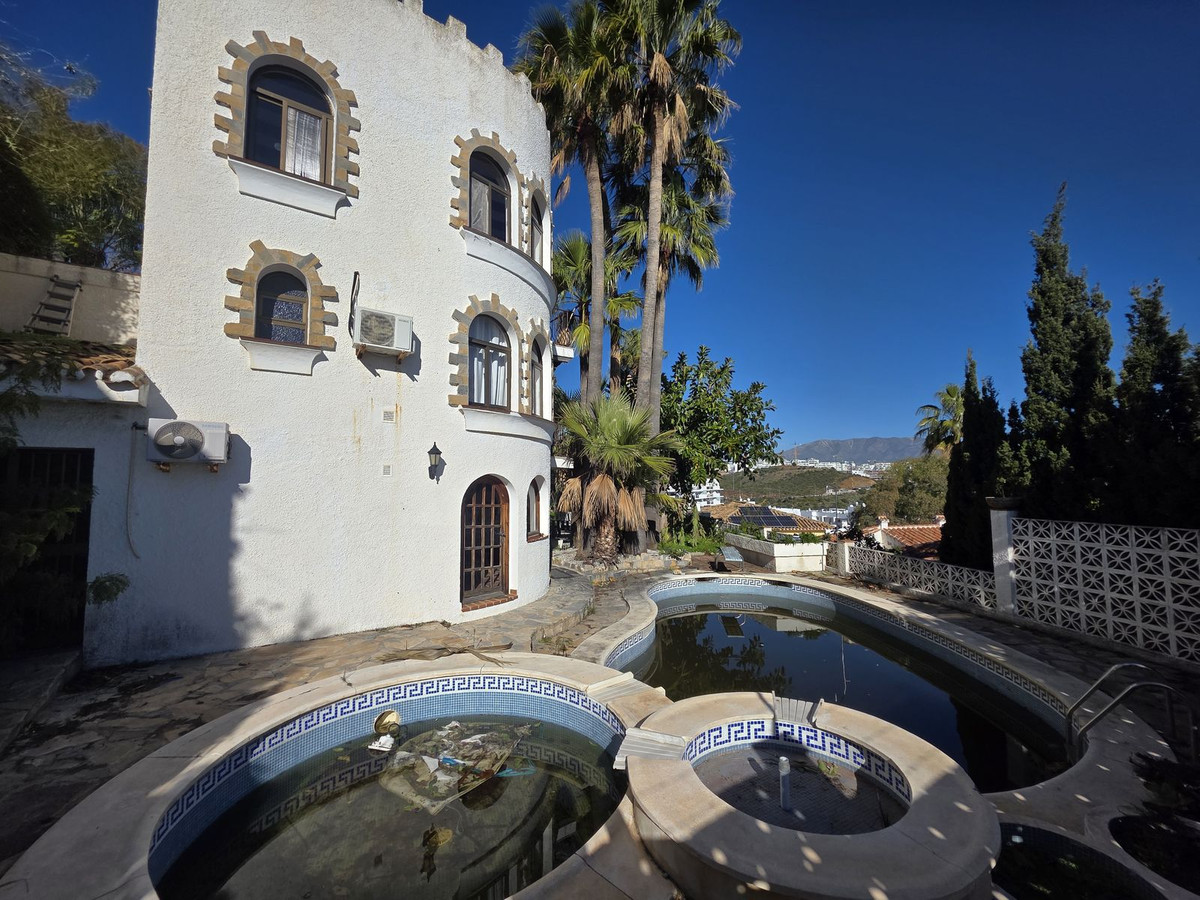 Great opportunity to reform a villa with a private garden and spectacular sea views over the coast and views over to the famous village of La Cala de Mijas! The villa offers a total built of 370m2, currently with five bedrooms, three bathrooms, one toilet. Plot size 873m2, facing south east! Further a large living room, a kitchen, a hall, an elevator, a basement, a private garden and a pool.