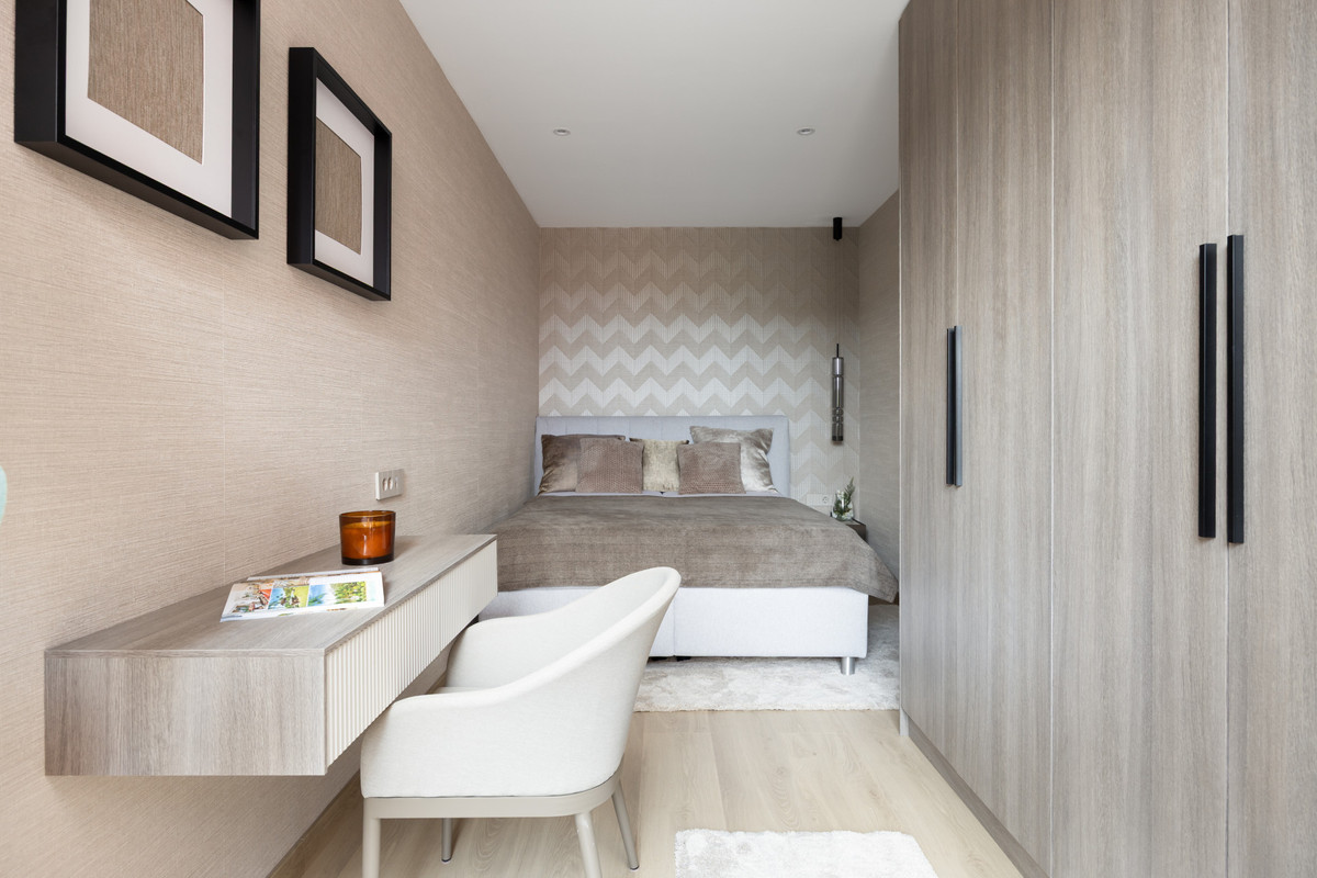 Inside, the 70 m² open-plan living, dining, and kitchen area welcomes abundant natural light, creating an atmosphere of spacious elegance. The home includes three serene bedrooms and three beautifully appointed bathrooms, with the master suite offering a designer freestanding bathtub and wall-mounted rainfall shower. Every detail reflects craftsmanship and harmony: Arklam stone countertops, a statement kitchen island, Miele premium appliances, and a built-in wine cooler complement Austrian-made furniture boards and tailor-made storage solutions. Warm Belgian flooring and Hansgrohe brushed bronze fittings add understated sophistication, while motorised curtain rails and shutters bring effortless comfort.