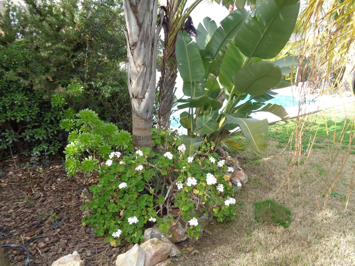 From the swimming pool zone, the footpath meanders through the garden passing incredible Rose bushes, a small herb garden, native trees and bushes and a bountiful fig tree.. And almost all of the perimeter is protected with striking shades of Bougainvilla.