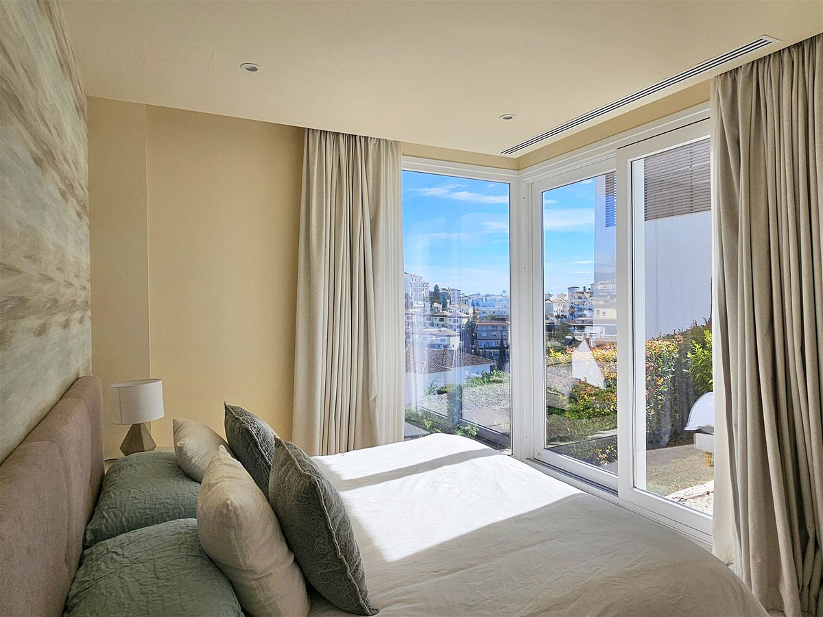 With 357m² of build arranged over three levels, all connected by both LIFT and staircase, the south-facing design makes the most of natural light throughout the day. Upon entering the property is a spacious open-plan lounge and fully equipped modern kitchen with island/breakfast bar, both with sea views and overlooking the generous 114m2 outdoor terrace and private 32 m2 heated saltwater private swimming pool. Also on this level are two bright and generously sized bedrooms with ensuite bathrooms and fitted wardrobes, a guest toilet, and useful storage closet.