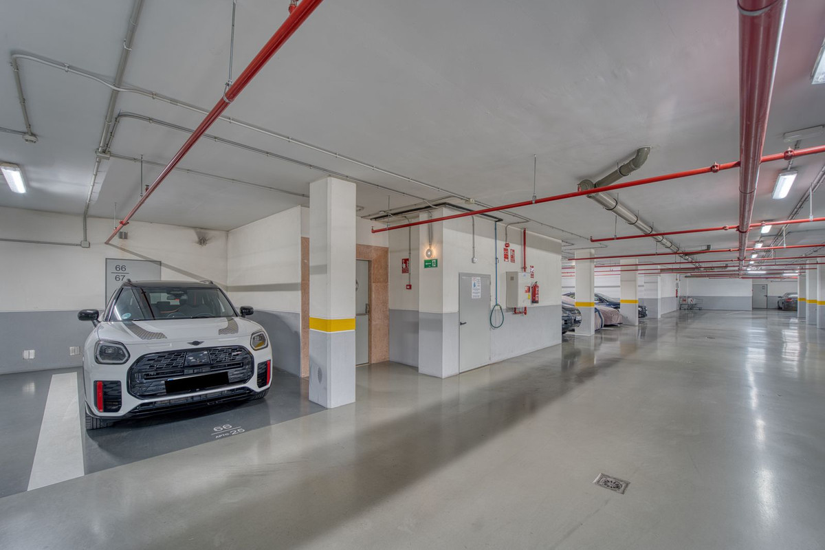 The fully fitted kitchen comes equipped with quality appliances, complemented by a separate laundry room. Additional features include air conditioning, central heating, electric blinds, double glazing, and a high level of security within the gated community, which offers 24-hour surveillance and concierge service.