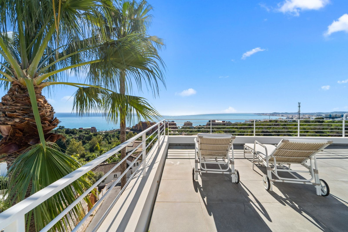 Spread across three expansive levels plus a private guest wing, the residence offers both grand entertaining areas and intimate private retreats. Every room has been positioned to embrace the surrounding landscape, with large glass openings framing breathtaking views of the Mediterranean and the hills of Fuengirola.