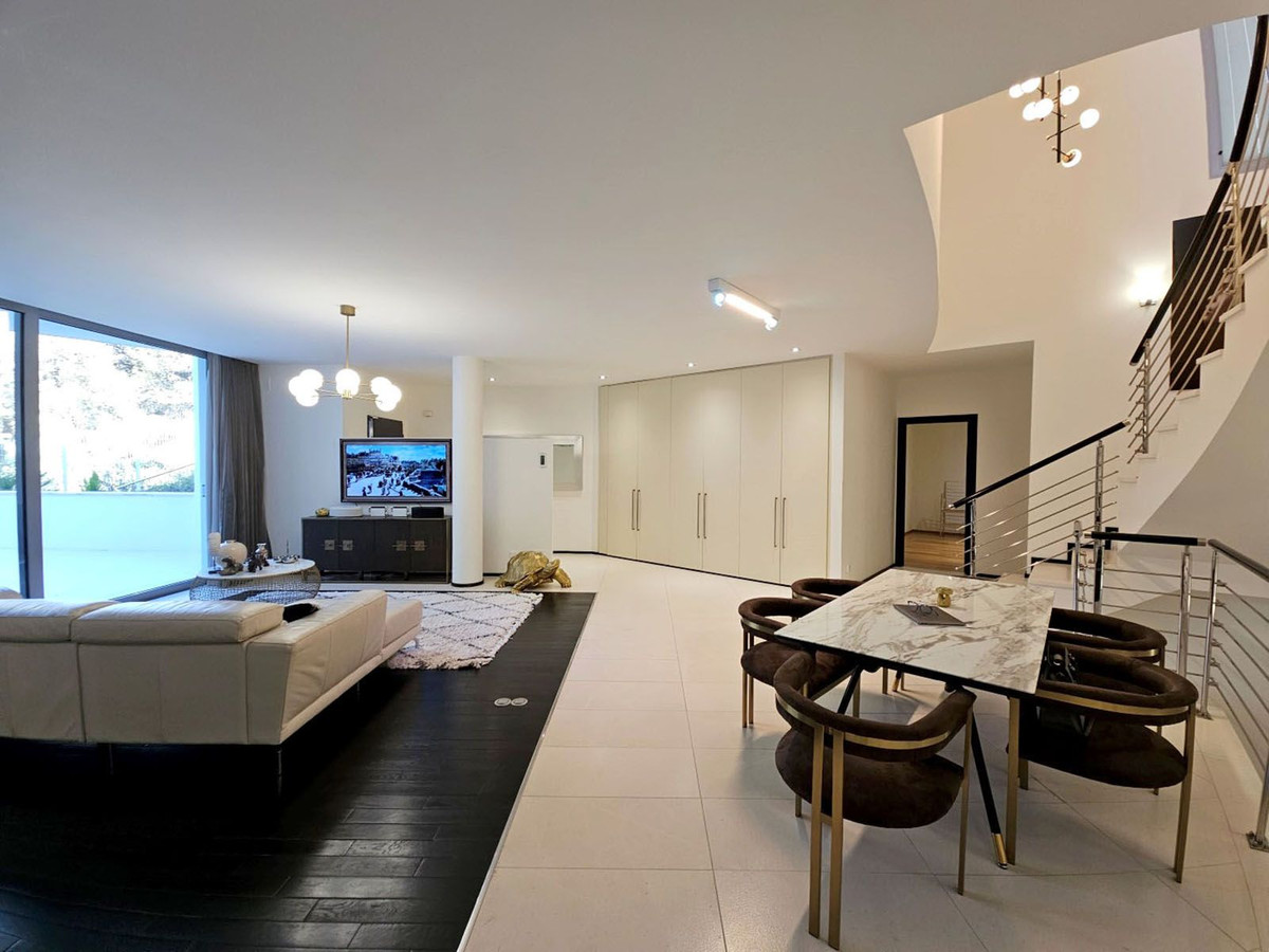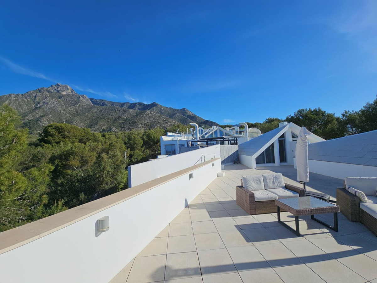 Outside Space: A very large roof terrace with panoramic views across the Costa del Sol towards Africa and with the beautiful Sierra Blanca mountain range behind. There is also a spacious terrace on the ground floor.