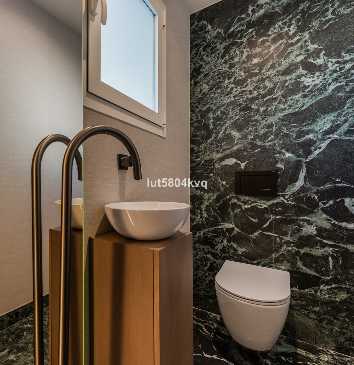 Upstairs, the villa features three generously sized en-suite bedrooms, each thoughtfully designed for comfort, privacy, and natural light. The master suite, located on this level, is a true highlight—featuring a stylishly centered bed, a spacious walk-in wardrobe, and a luxurious en-suite bathroom. This serene retreat offers uninterrupted panoramic views of both La Concha Mountain and the Mediterranean Sea, creating a breathtaking visual experience from the moment you wake.