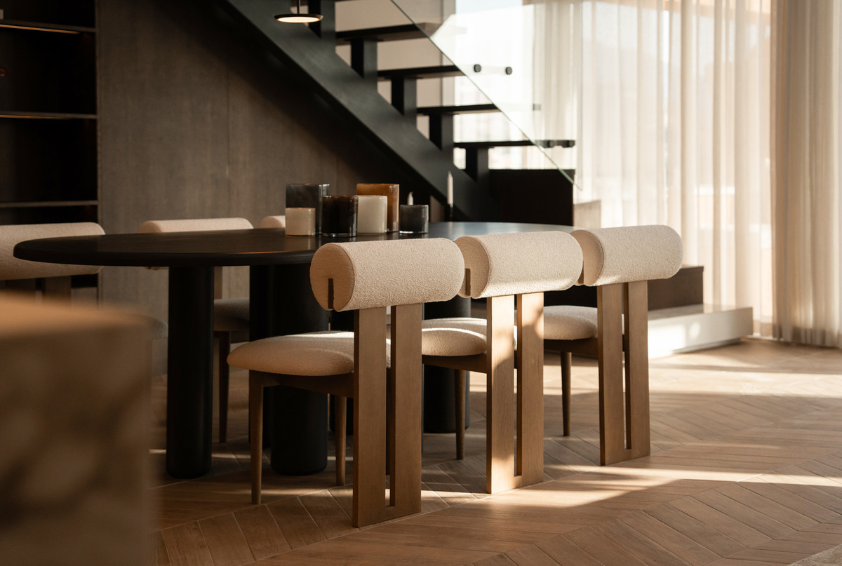 The interior is defined by double-height ceilings and a bright open-plan layout, where the living, dining, and kitchen areas flow seamlessly together. Every element has been carefully redesigned, featuring sleek modern finishes, a stylish open-plan kitchen, and underfloor heating in the bathrooms, ensuring year-round comfort. Sold fully furnished, the penthouse is presented in excellent condition and is ready for immediate occupancy.